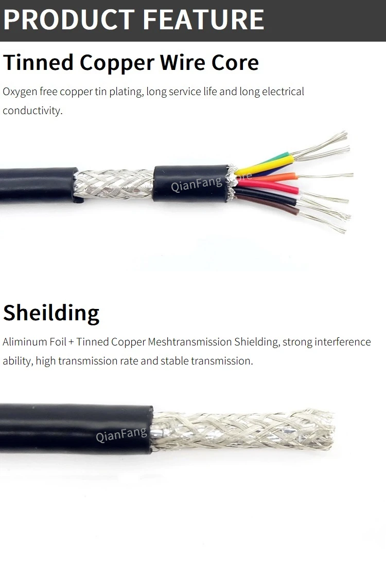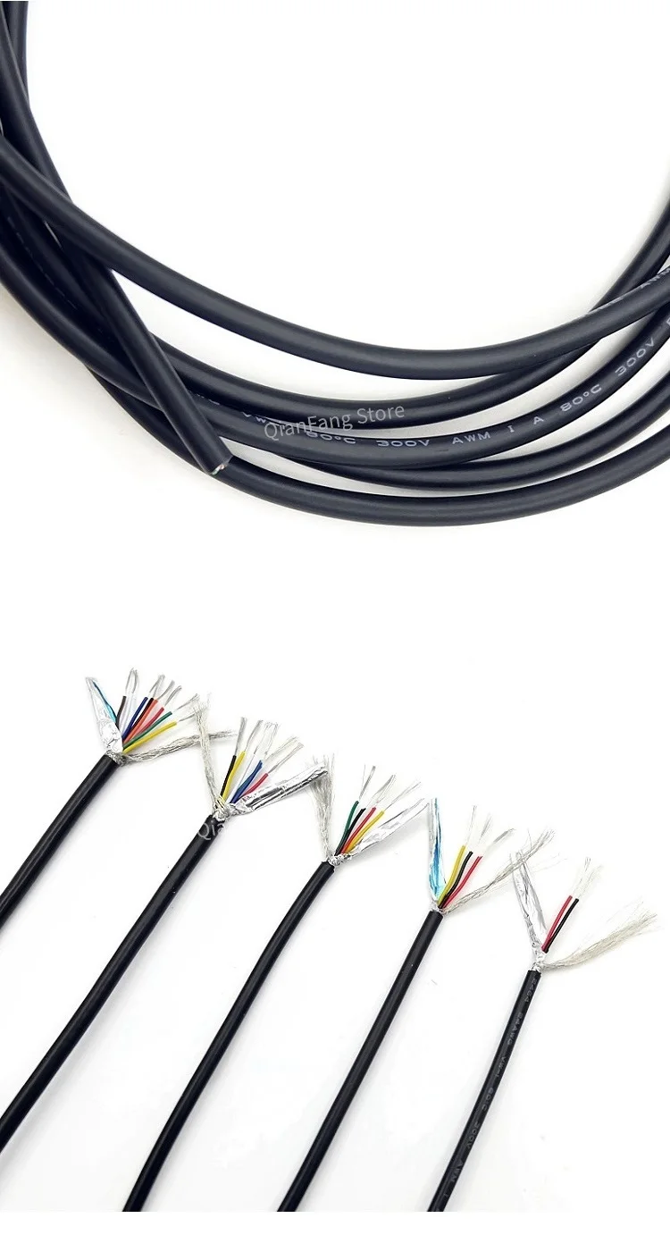Cable blindado de 2M, Cable de Control de señal de cobre, 26AWG, 24AWG, 22AWG, 2, 3, 4, 5, 6 y 8 núcleos, UL2464