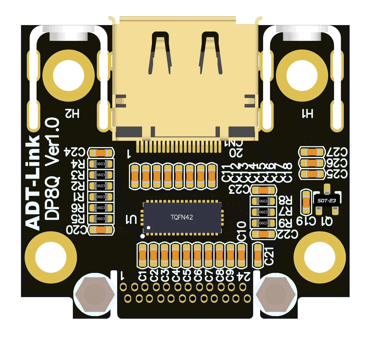 Nota 1:DP8B y DP8T no tienen e-mark/chip. Después de conectar dos líneas DP en serie, la atenuación de la señal puede no cumplir con la velocidad completa dp1.4. DP8Q con e-mark/chip, la tecnología de chip activo puede mejorar la señal, soporta velocidad completa DP1.4