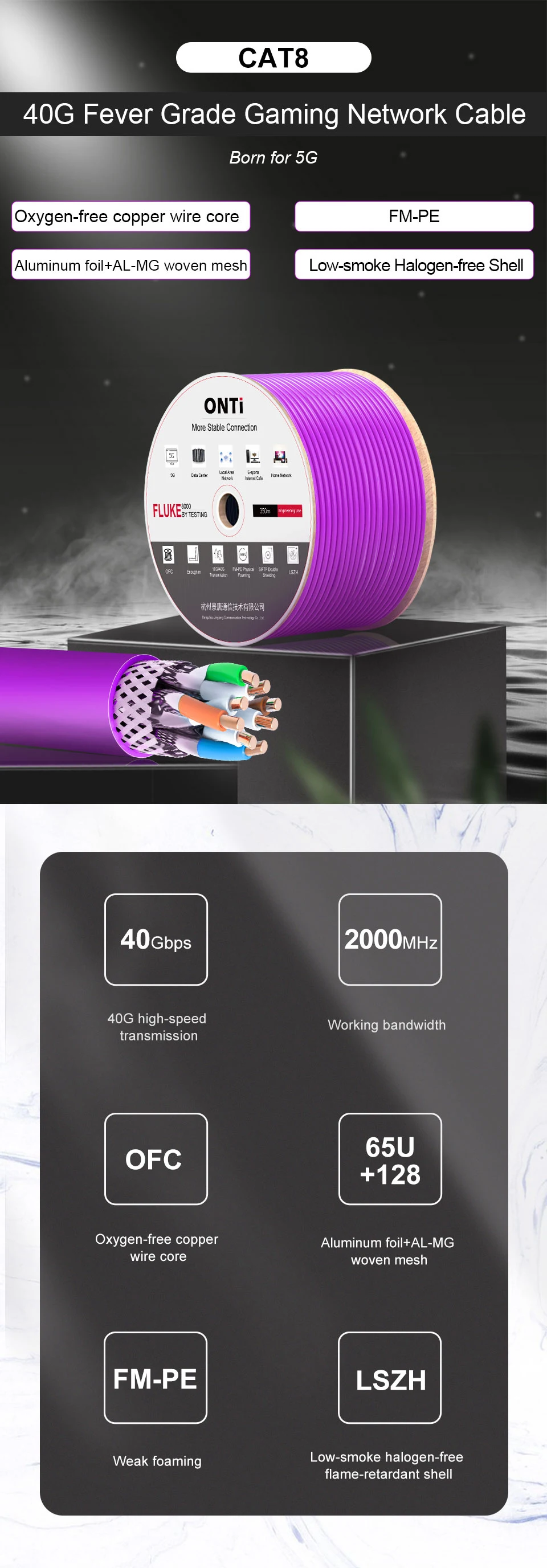 ONTi 12803001-P CAT8 S/FTP 22AWG 4PR LSZH ANSI/TIA 568C.2-1 e ISO/IEC TR 11801 25-40Gbps 2000MHz 001M-305M