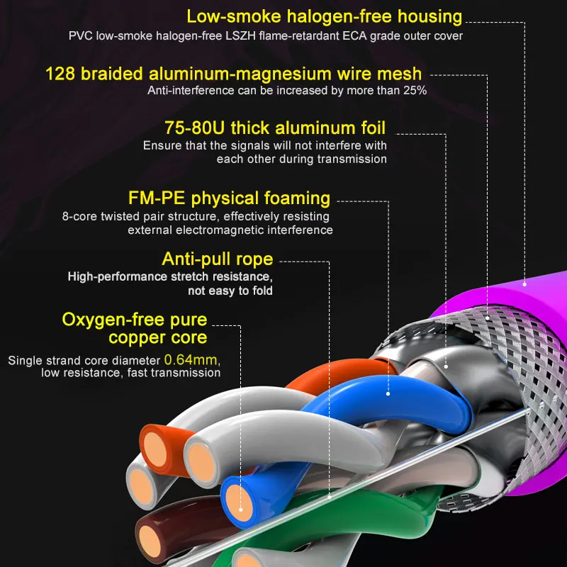 Comprar CABLE blindado RJ45 CAT8 CAT7 CAT6A S/FTP 22AWG/23AWG 4PR de cobre libre de oxígeno LSZH ANSI/TIA 568C.2-1 e ISO/IEC TR 11801