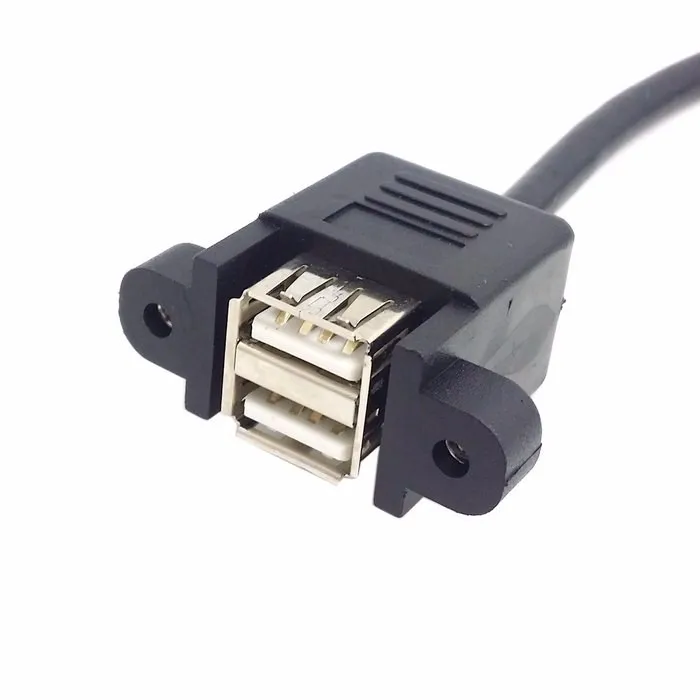 50cm Dual USB 2,0 tipo A hembra a placa base Cable de cabecera de 9 pines con agujeros de panel de tornillo