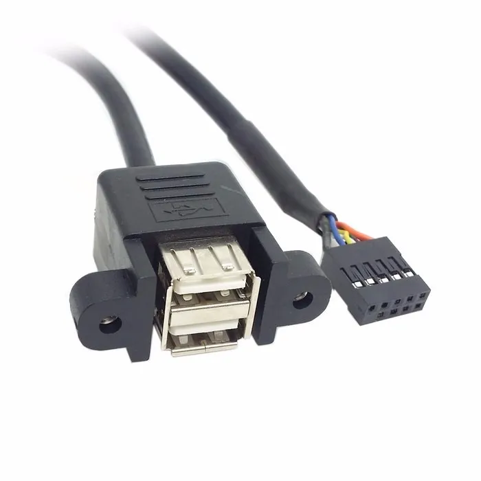 Comprar Cable de cabezal de 9 pines con orificios de Panel de tornillo, USB Dual apilable de 50cm, tipo A, hembra A placa base
