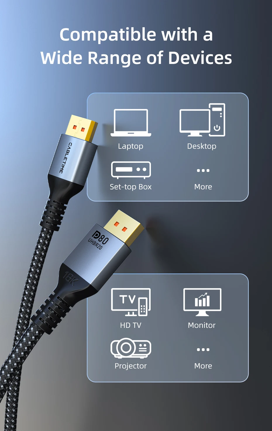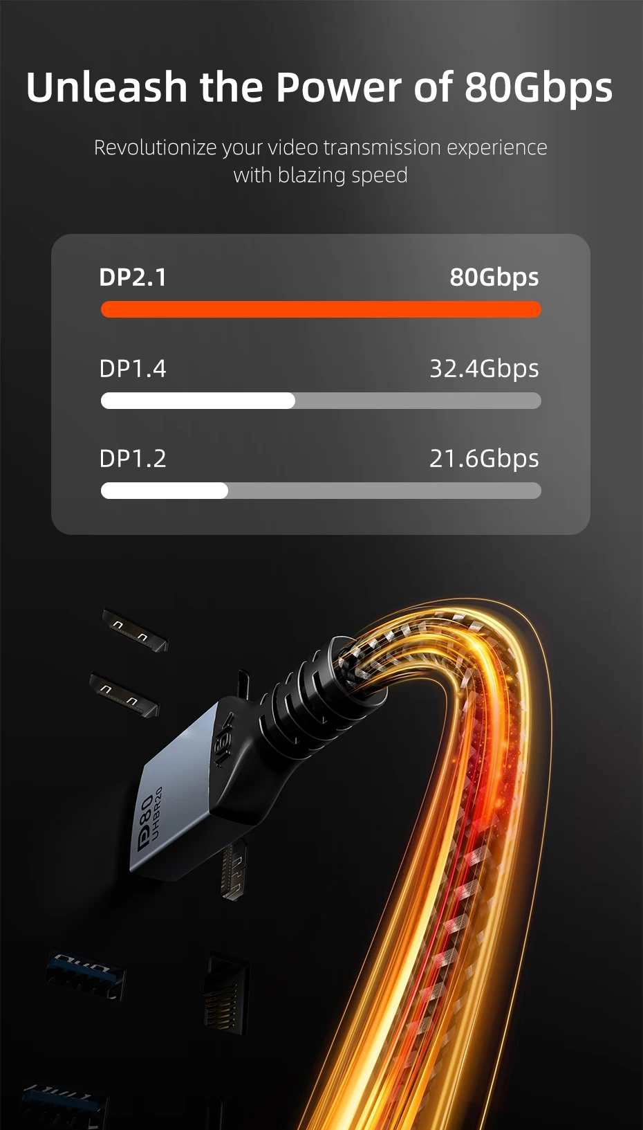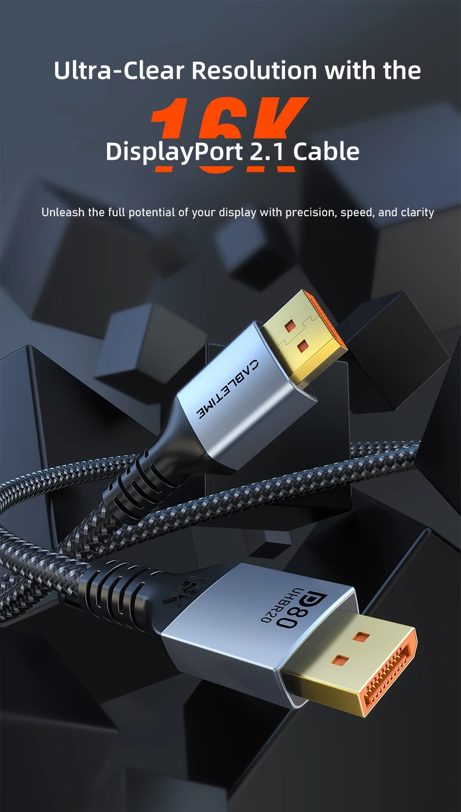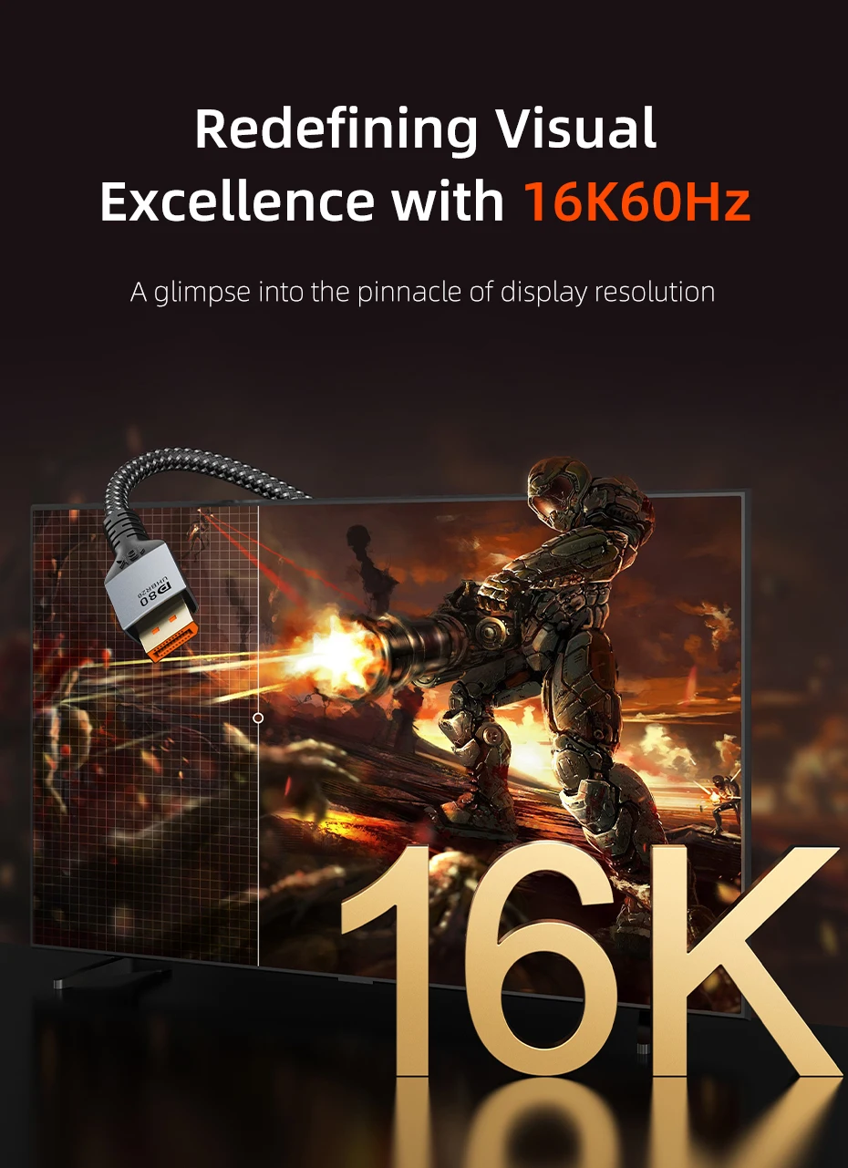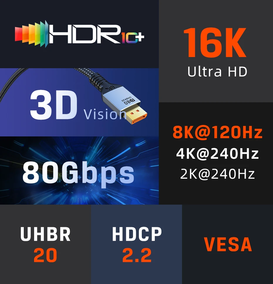 Cable DisplayPort 2.1 16K@60Hz 8K@120Hz 4K@240Hz 80Gbps
