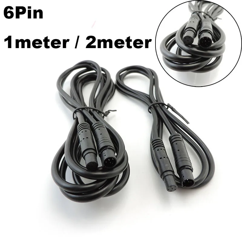 Línea de cámara macho a hembra de 1m y 2m, Cables de extensión de cámara DVR para coche de 6 pines, Monitor HD, Cable de cámara de visión trasera para vehículo