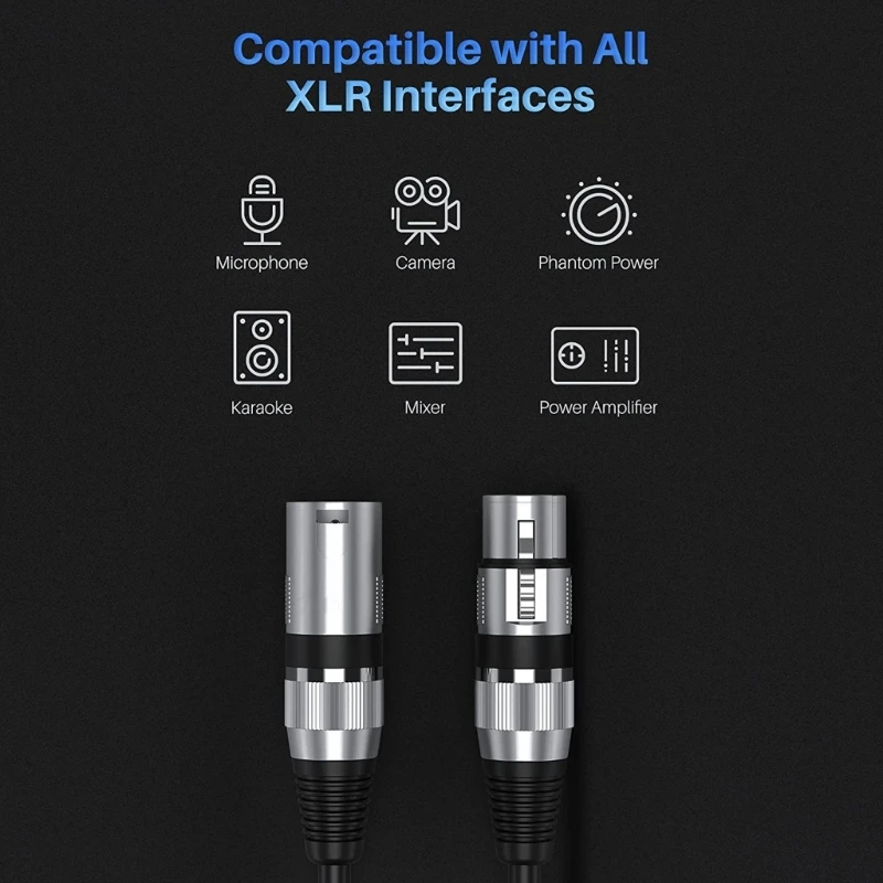 Este cable MIC es perfectamente compatible con equipos con conectores de 3 pines como micrófonos, mesas de mezclas, amplificadores de potencia, armonizadores de estudio, altavoces, bahías de conexión e iluminación de escenario. y así sucesivamente.