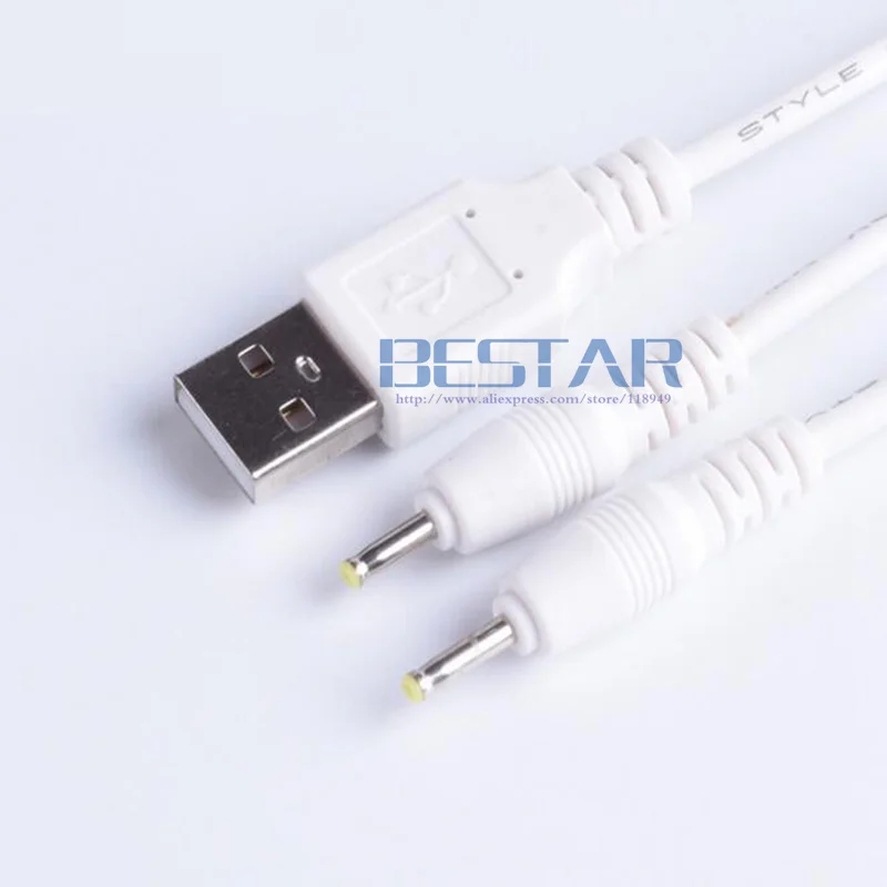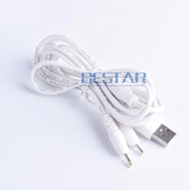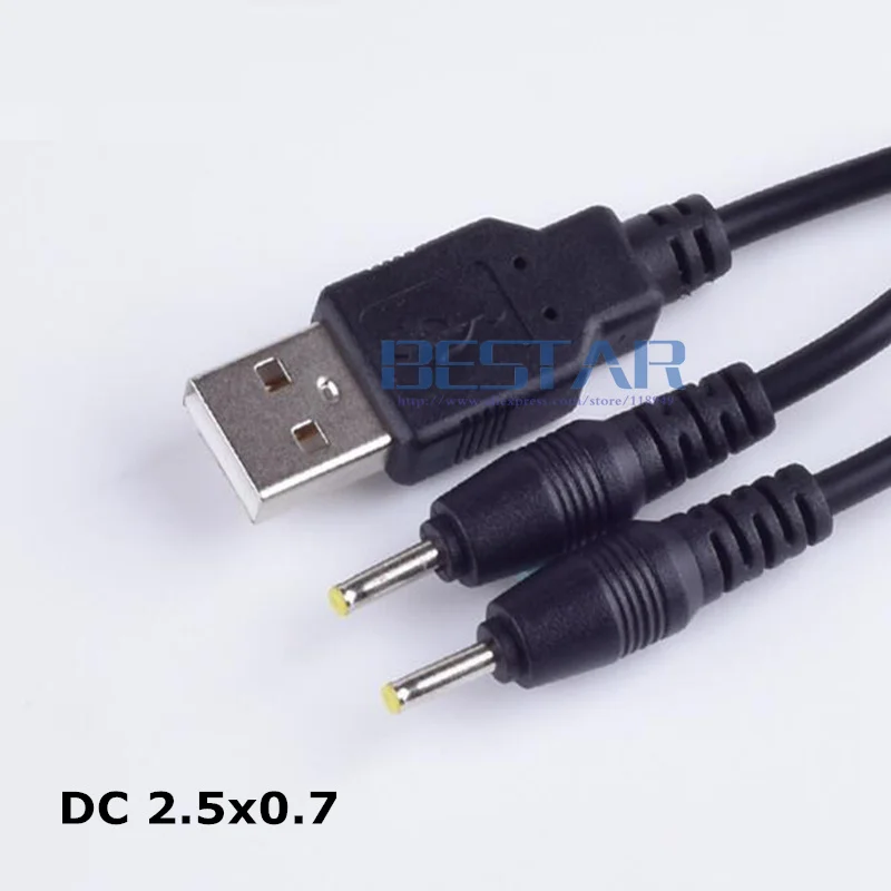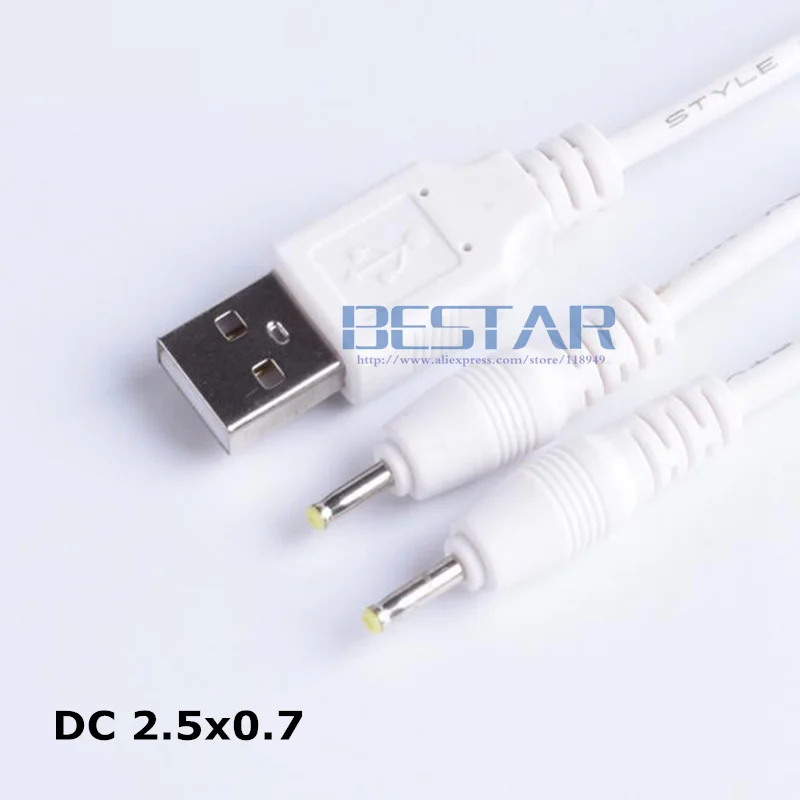 1 En 2 salidas 2A 1M 3FT USB a Dual DC 2,5*0,7 doble macho a macho enchufe de alimentación cable de carga DC 2507 Jack cable de carga Cable de 2 pines