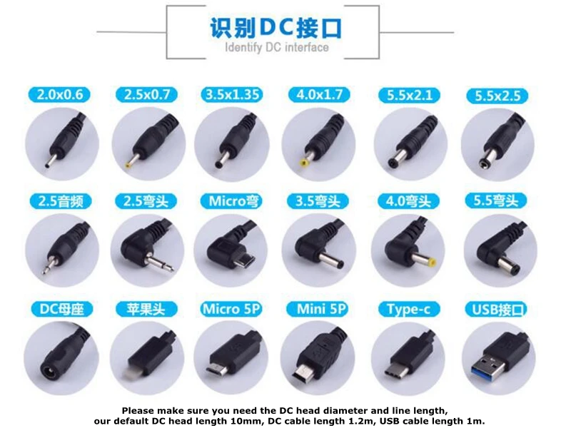 3) Tamaño del conector:USB a doble CC 2,5*0,7