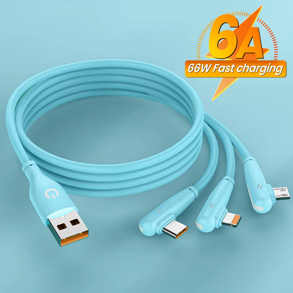 Comprar Cable de carga 3 en 1 2 en 1 para iPhone, Cable Micro USB tipo C de 90 grados, para Huawei, Samsung y Xiaomi, 14, 13, 12, 3 en 1