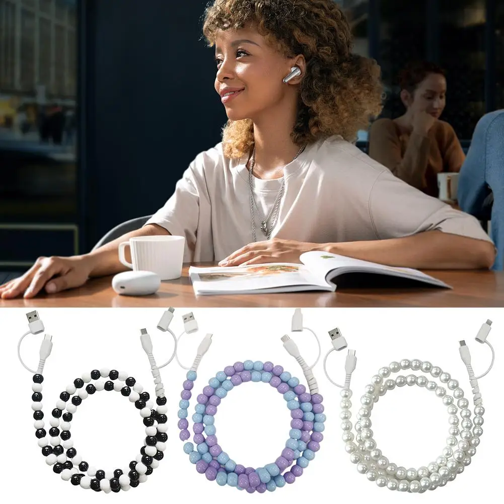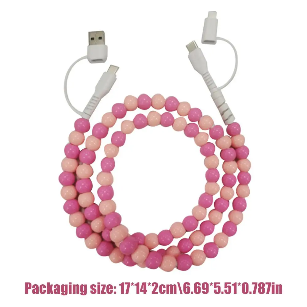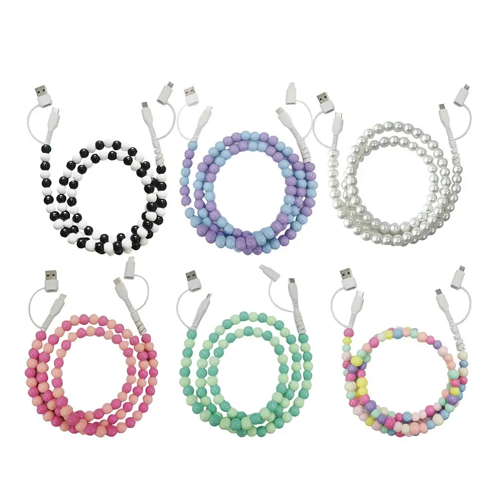 Comprar Cable de carga 4 en 1 PD3.0 para IPhone, sincronización rápida de datos, Cable de teléfono con cuentas, Cable de carga USB de 8 pines de 480 Mbps para todos los teléfonos