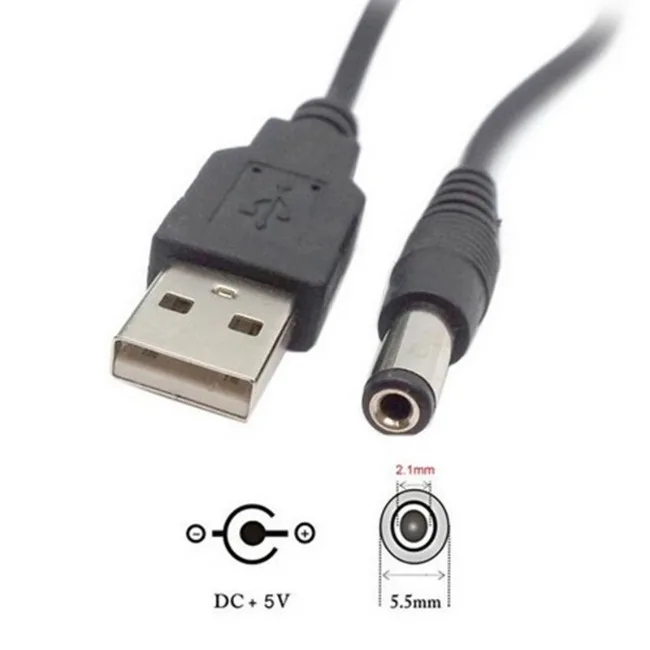 Comprar Cable de carga de alimentación USB a 5,5mm/2,1mm, diseño de conector de barril de 5 voltios DC 2A, 80cm
