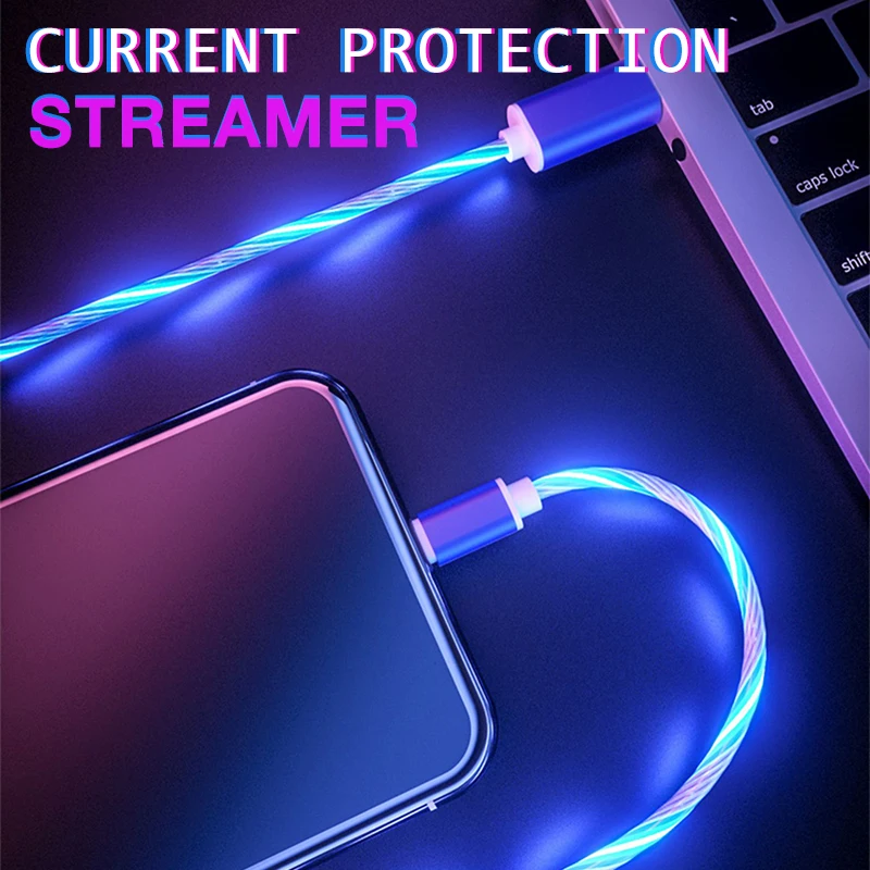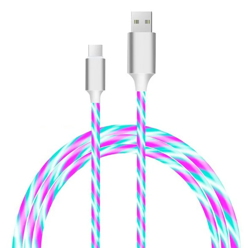 Comprar Cable de carga brillante para móvil, Cable de carga rápida 2A, Streamer de luz LED, Micro USB tipo C, de 8 pines para iPhone y Android USB-C, compre 1 y Obtenga 1 gratis