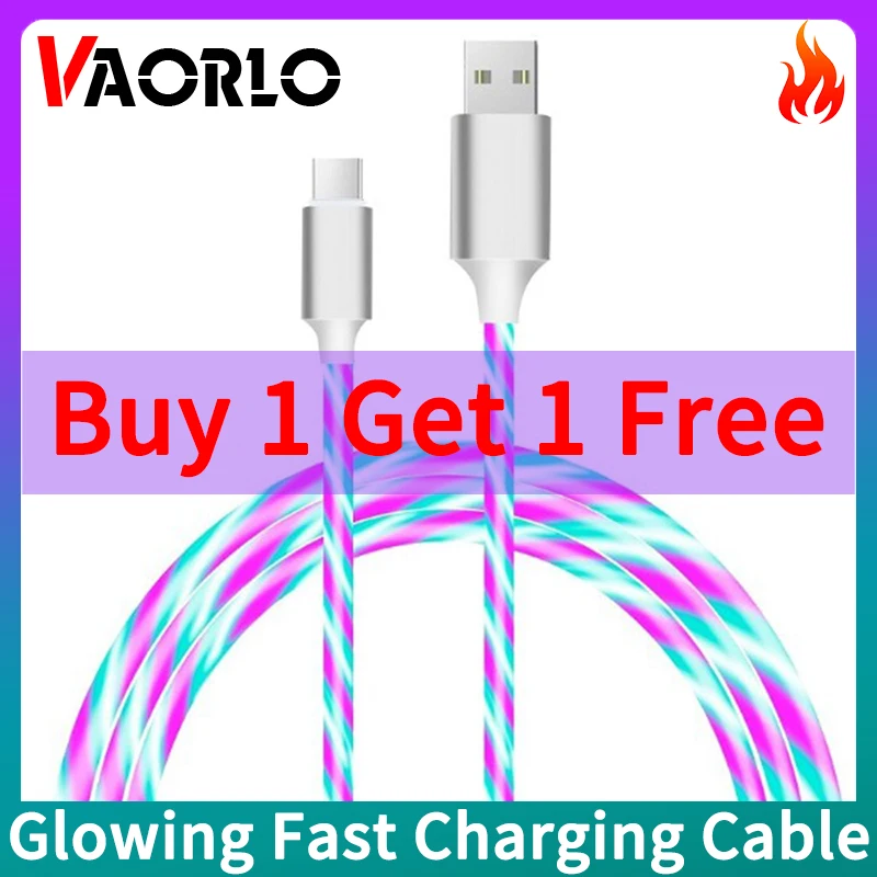 Comprar Cable de carga brillante para móvil, Cable de carga rápida 2A, Streamer de luz LED, Micro USB tipo C, de 8 pines para iPhone y Android USB-C, compre 1 y Obtenga 1 gratis