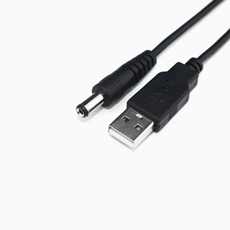 Cable de carga de cabeza redonda Cable de datos de enchufe de alimentación USB a DC 5,5*2,1/2,0mm/3,5*1,35/4,0*1,7 DC Cable de alimentación adaptador negro
