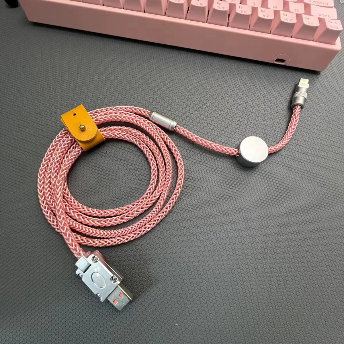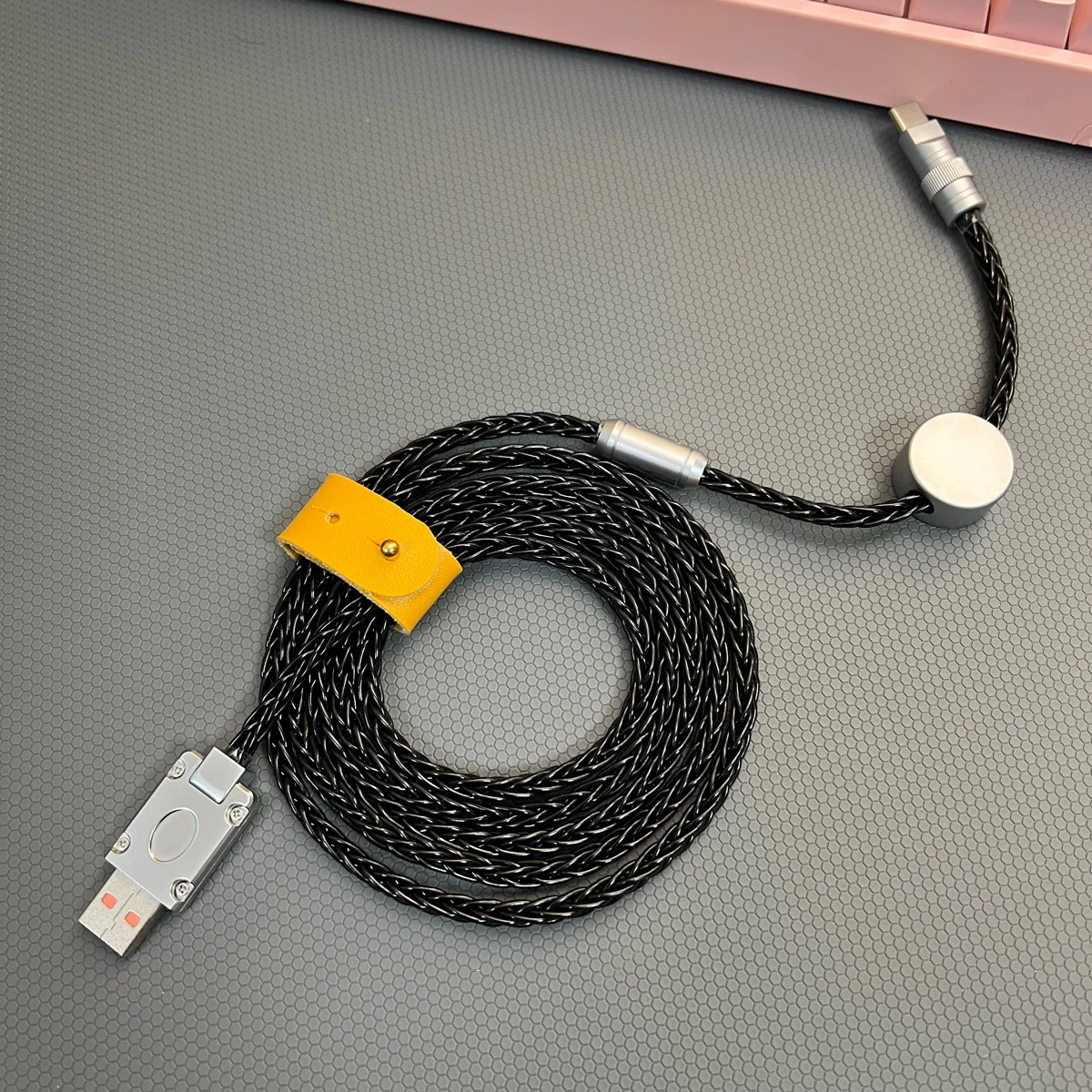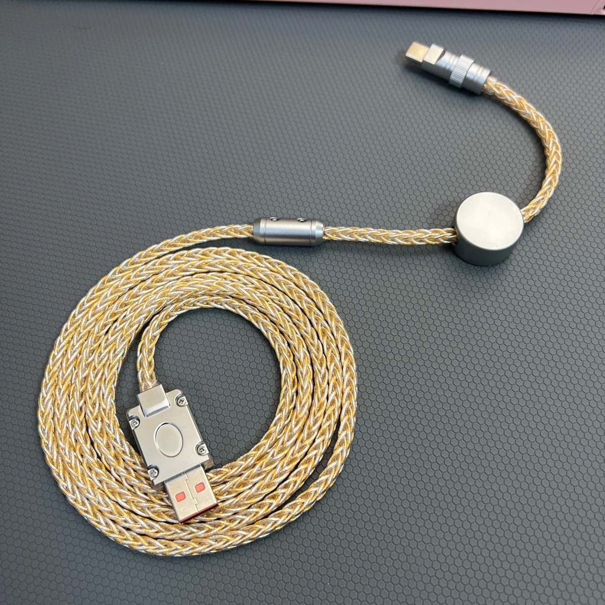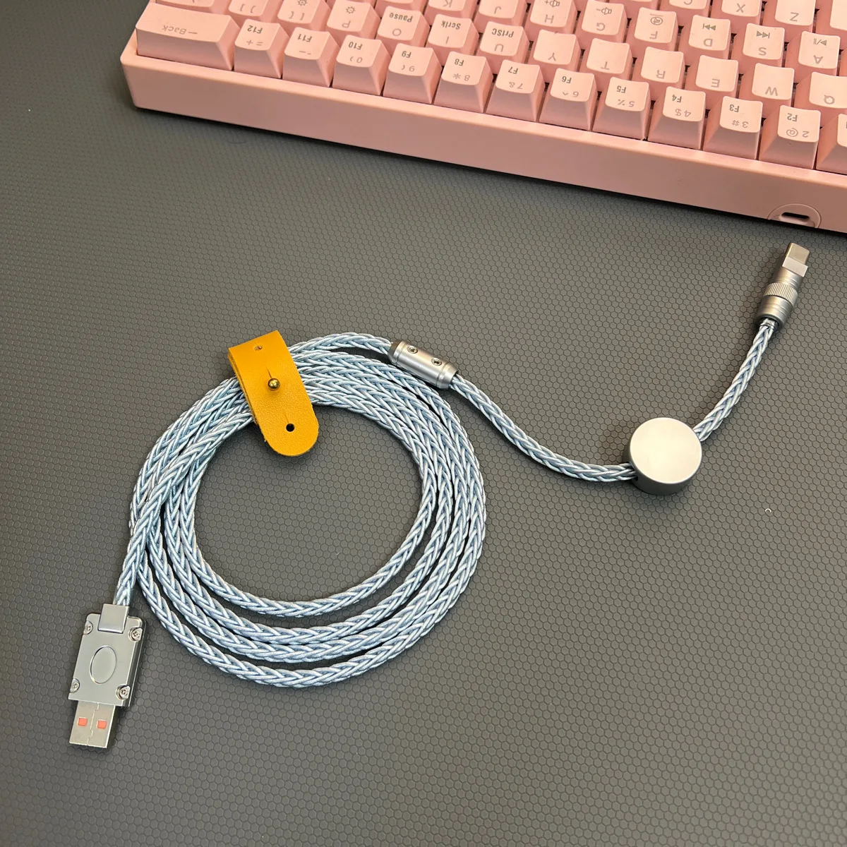 Cable de carga de datos plateado de 8 hilos de cobre de cristal único USB tipo C de Metal para teclado mecánico Cable de enchufe de aviación