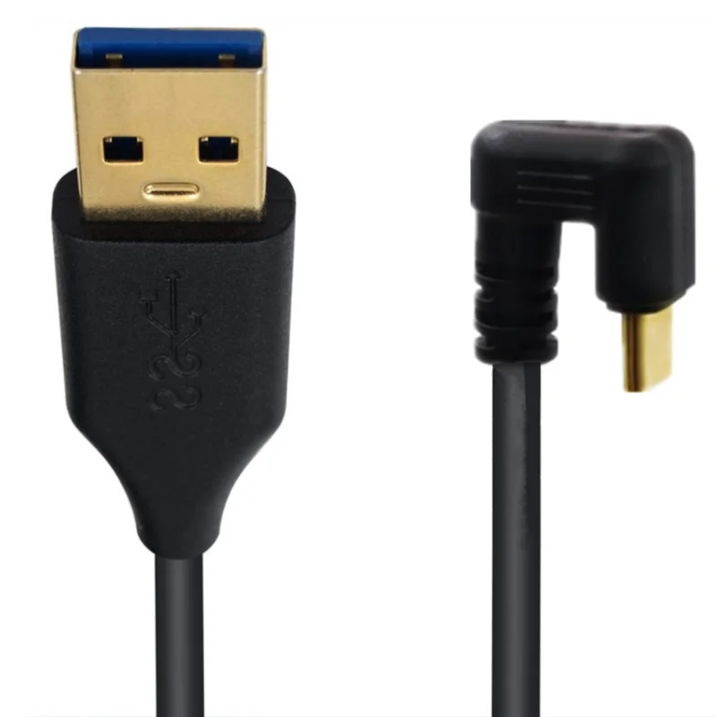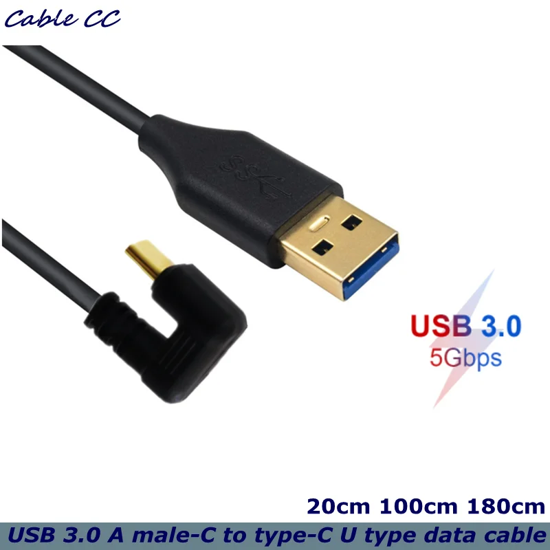 Cable adaptador de carga de datos de codo en forma de U de tipo C USB 3.0A macho de 5Gbps chapado en oro