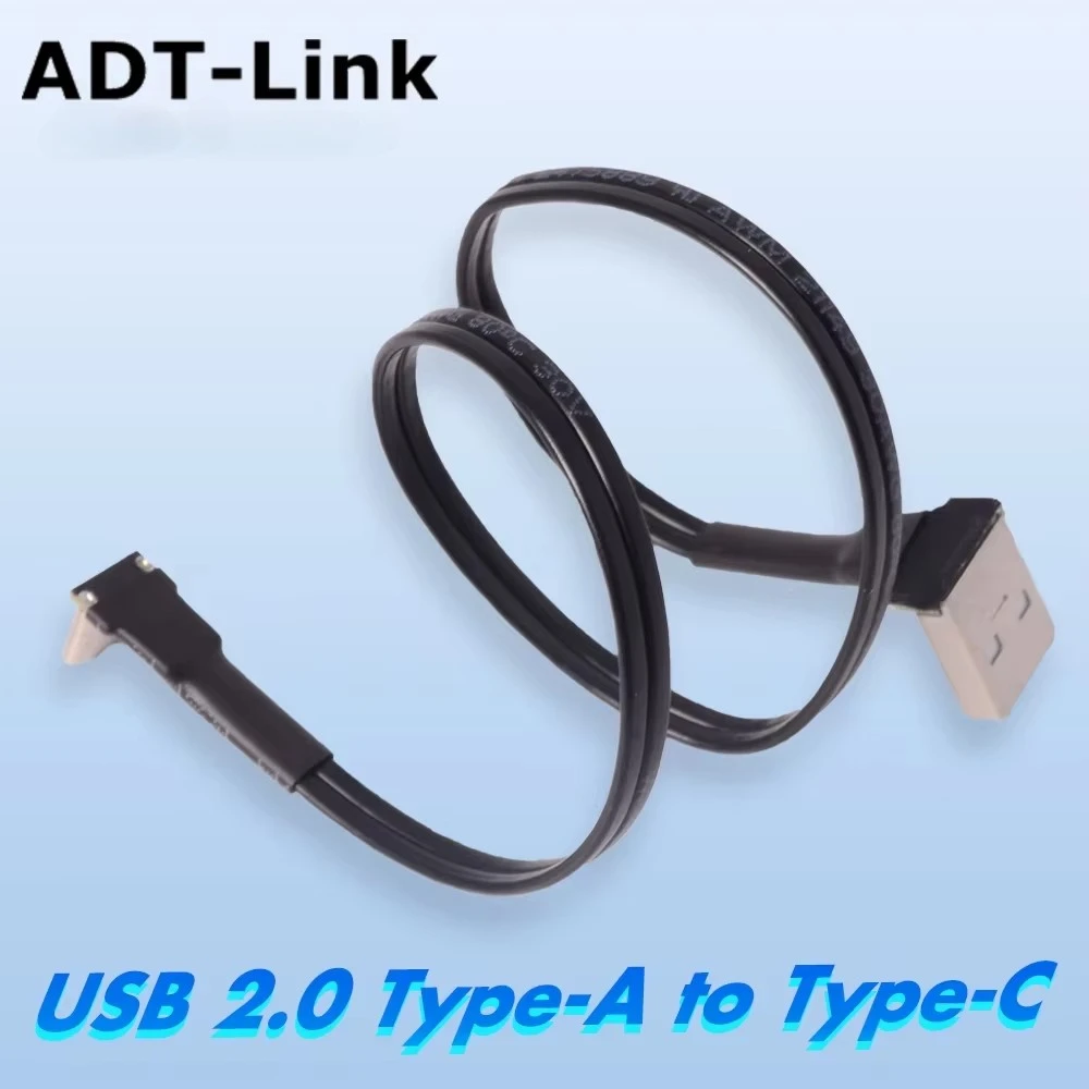 Comprar Cable de carga de datos macho USB-C tipo C de ángulo arriba y abajo, codo macho de 90 grados a USB 2,0, Cable plano fino USB tipo C de 0,1 m/0,2 m/0,5 m/1m