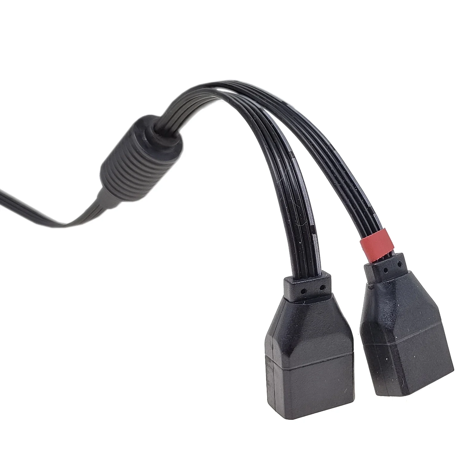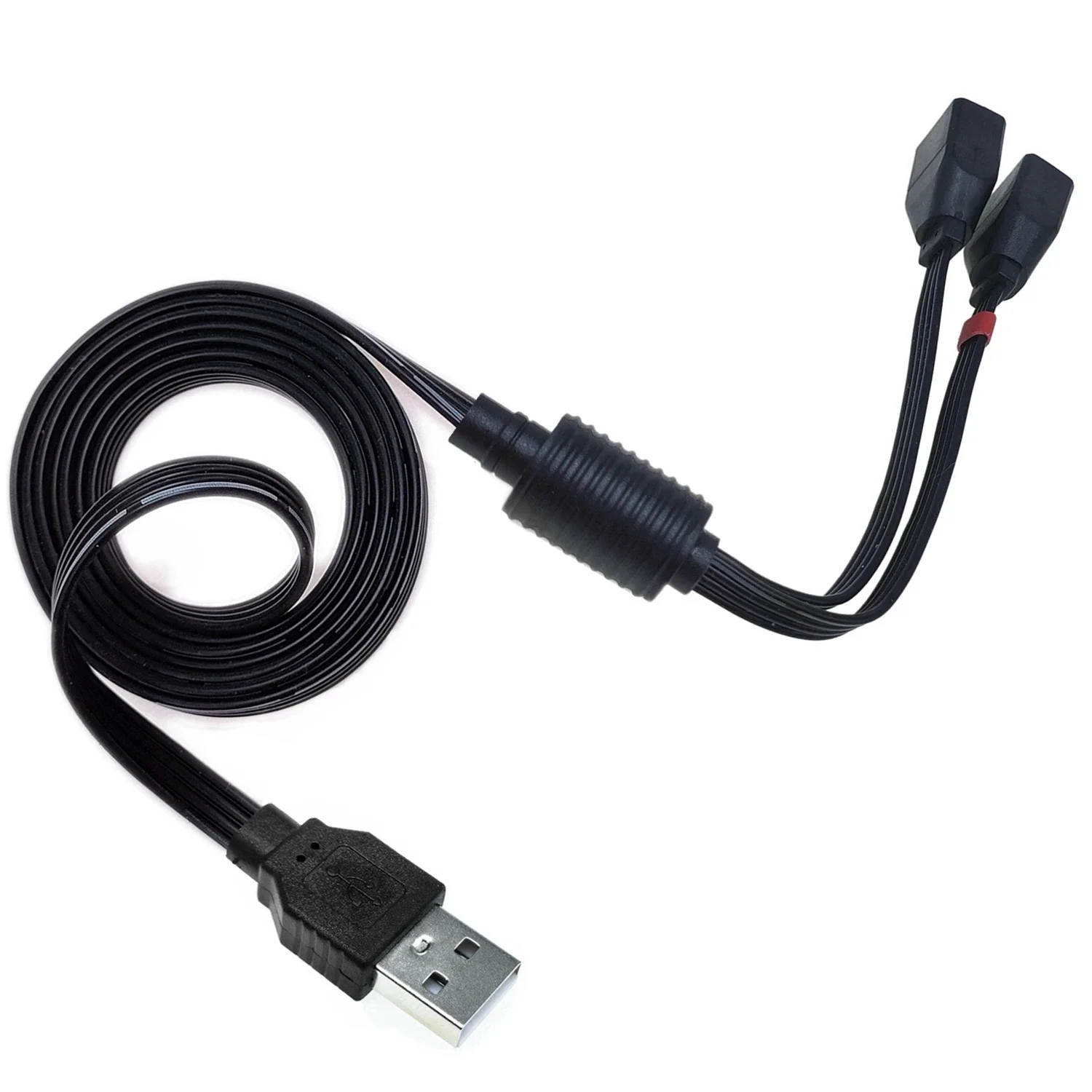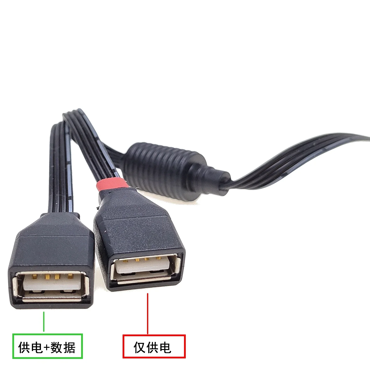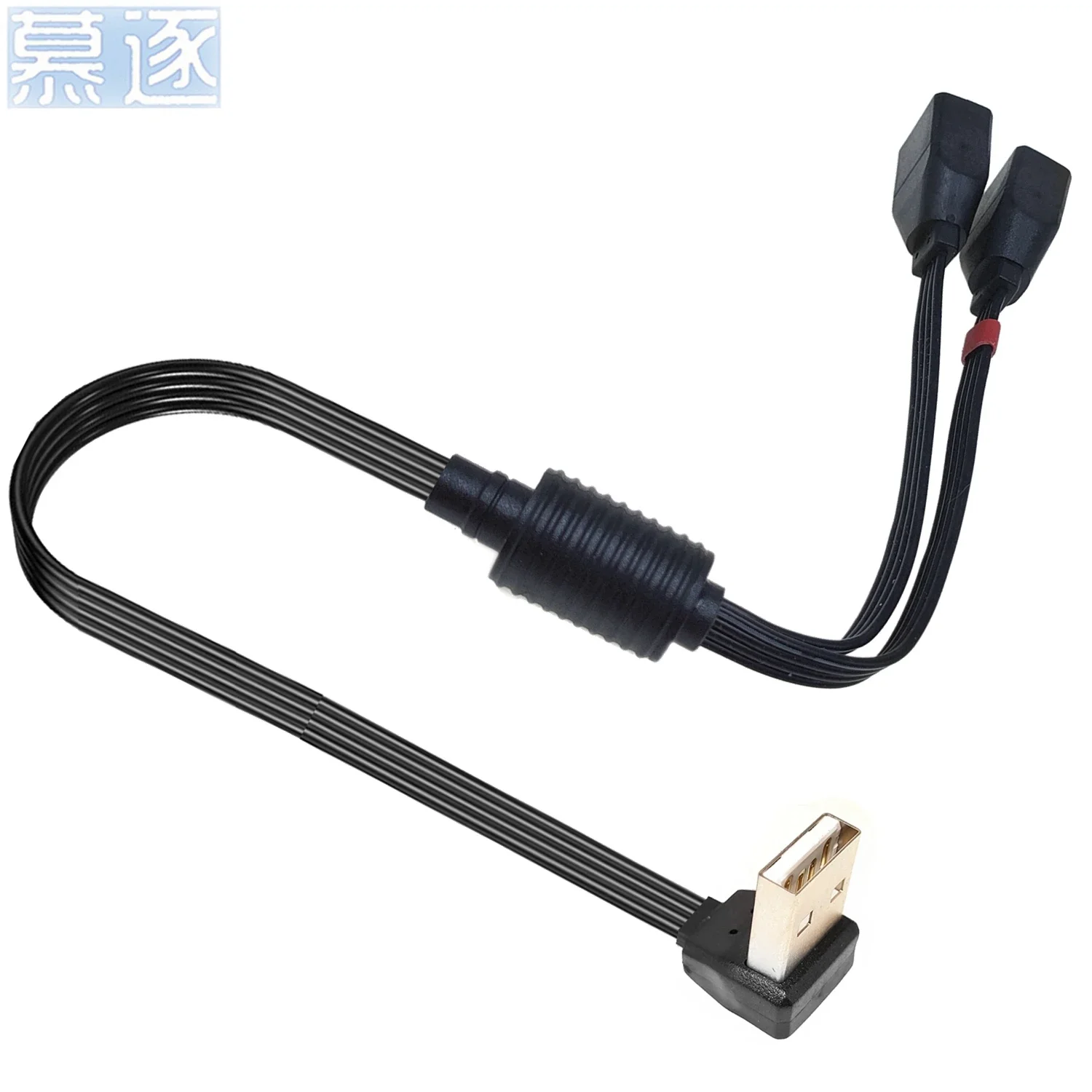 Cable de carga de datos montado en el coche, codo de computadora USB, un arrastre, dos cables de carga de datos, codo de 90 grados, USB una división, dos puertos hembra, cable de extensión