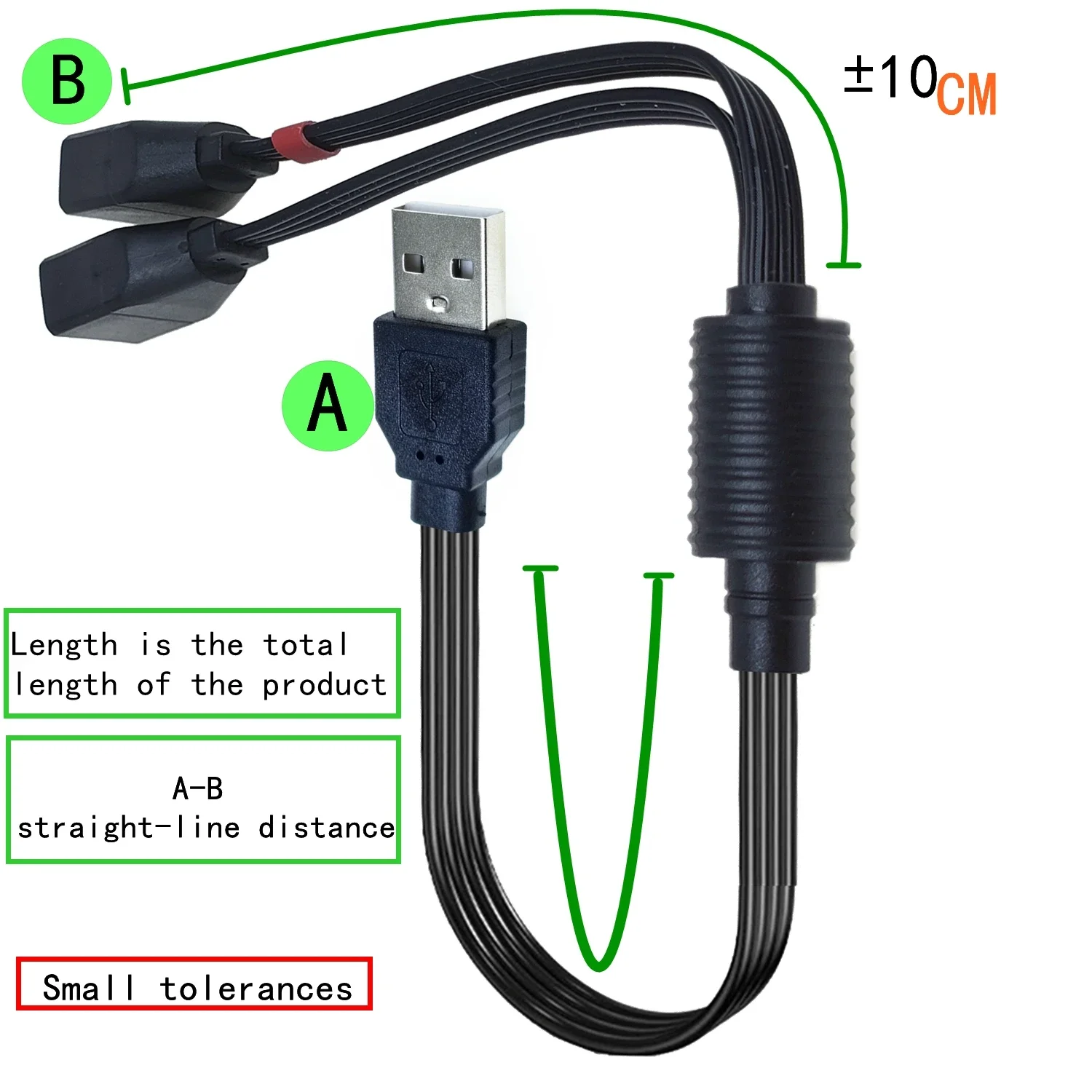 Codo de computadora montado en el automóvil USB un arrastre dos cable de carga de datos codo de 90 grados USB una División Dos cable de extensión de Puerto hembra 1. Un cable de datos plano USB2.0 uno en dos, con uno que admite datos y el otro solo es capaz de suministrar energía. 2. La longitud es de 0,2 M 0,3 M 0,4 M 0,6 M 1,1 M