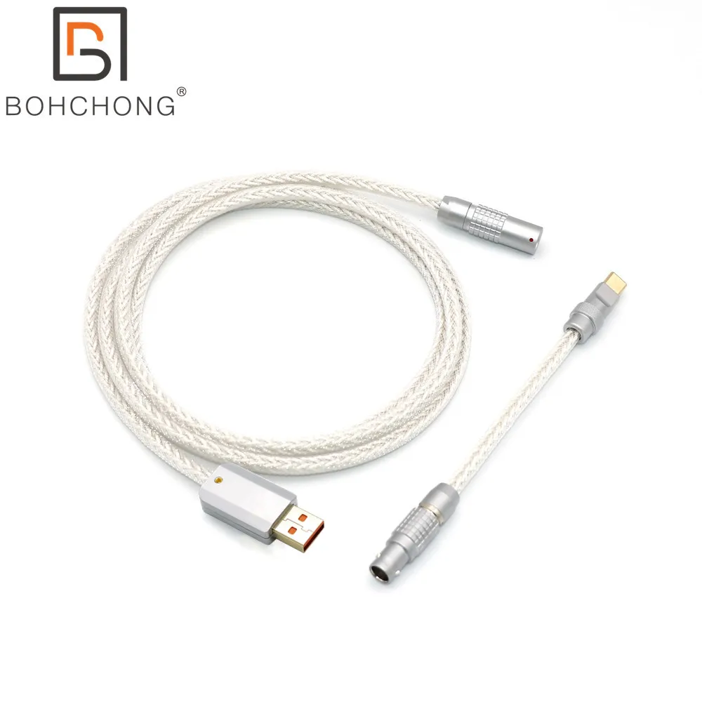 Comprar Cable de carga de datos trenzado para ordenador, conector USB tipo C 1B Lemo 7N de Metal de cobre puro, Cable de carga de datos trenzado de 8 hebras para teclado de juegos