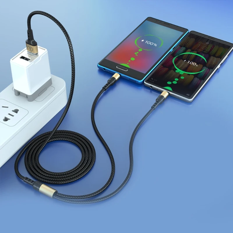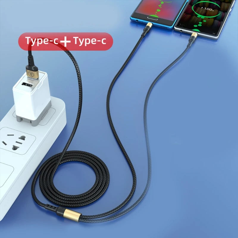● Uno para dos líneas de carga rápida: tipo C + tipo C, universal para dispositivos de interfaz tipo C, dos dispositivos se pueden cargar al mismo tiempo.