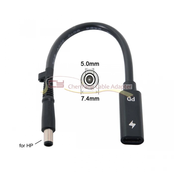Cable de carga tipo C de entrada hembra a CC PD apto para portátil HP 18-20V