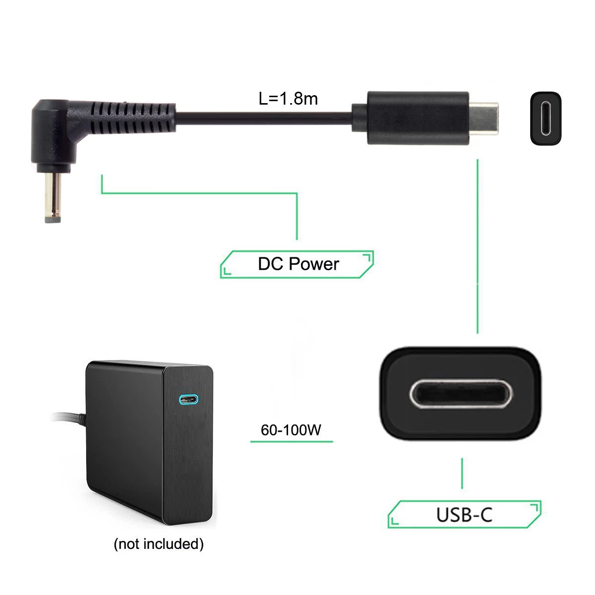 Úsalo con el cargador tipo C de 65W-100W para cargar cómodamente tu ordenador portátil con un puerto DC 18V-20V desde una toma de corriente.