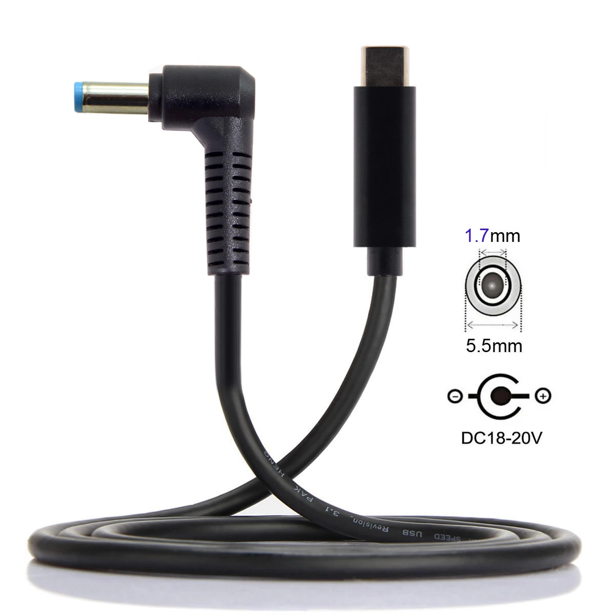 Cable de carga tipo C de entrada hembra a CC PD apto para portátil HP 18-20V