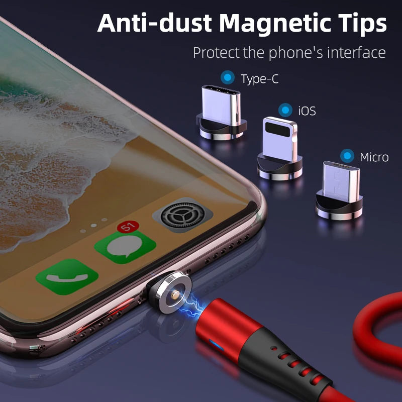 Cable 3 en 1 ampliamente CompatibleEste cable cargador de teléfono magnético se utiliza para la mayoría de dispositivos de carga, equipado con 3 tipos diferentes de puntas magnéticas que son Micro USB, tipo C y para IOS. Selecciona el tipo correcto al realizar el pedido.
