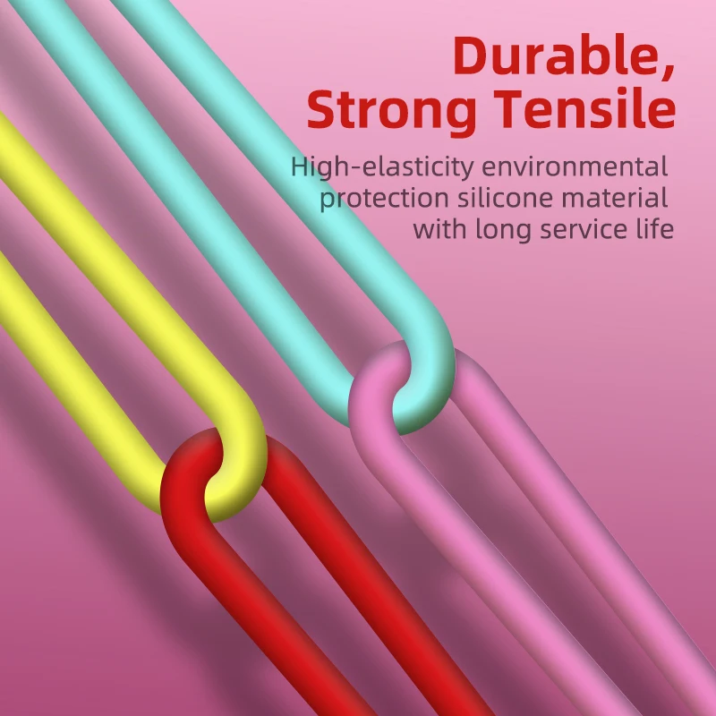 La silicona líquida tiene las características de alta flexibilidad, gran durabilidad, seguridad y respetuosa con el medio ambiente, etc. No tiene que preocuparse por que el cable de carga rápida usb c sea masticado por su bebé y sus mascotas.