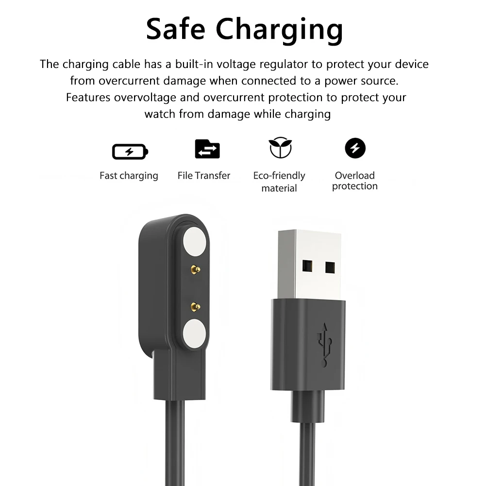 1.Carga sin esfuerzo con conectores magnéticos:Este cable de carga cuenta con puntos de contacto magnéticos que facilitan la carga de su reloj inteligente.Simplemente acerque el cable a su reloj y automáticamente encajará en su lugar de forma segura.