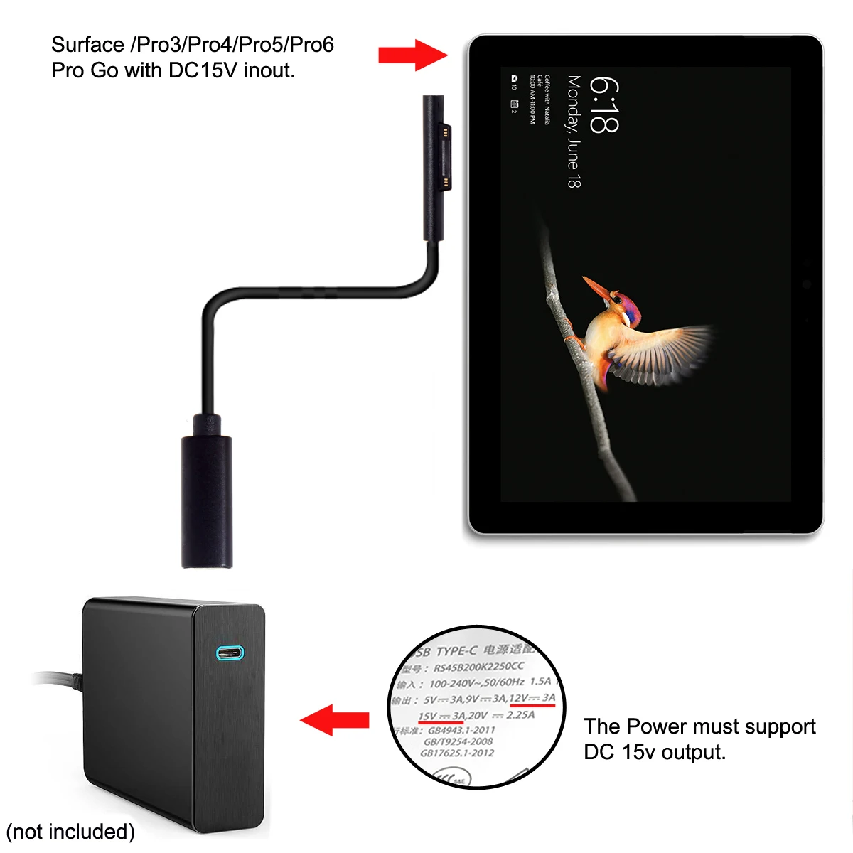 Cable de carga DC 15V Tipo-C Hembra a Surface Pro3 Pro4 Pro5 Pro6 Book Pro