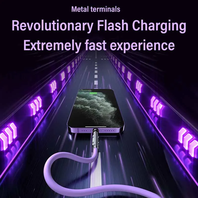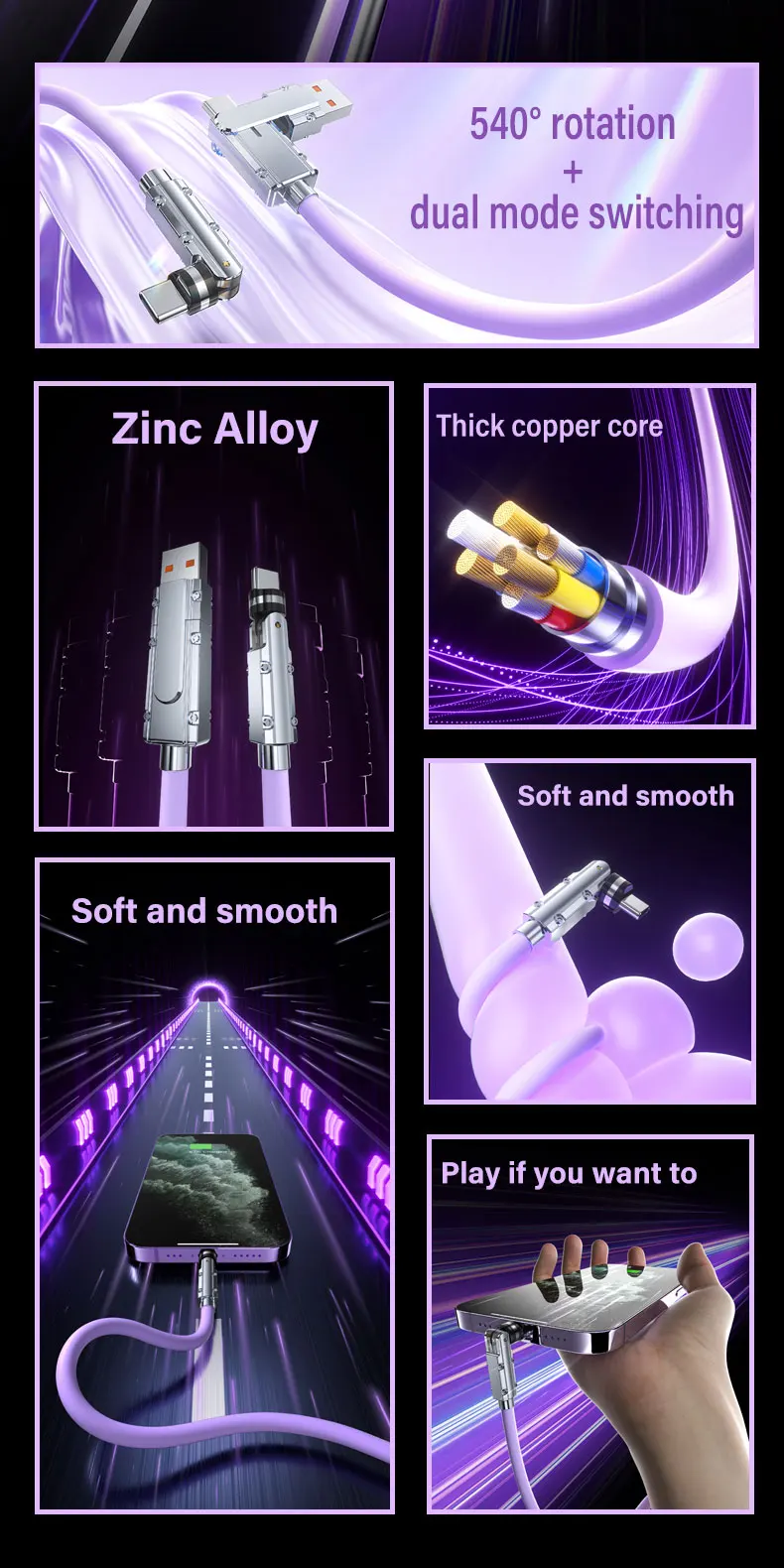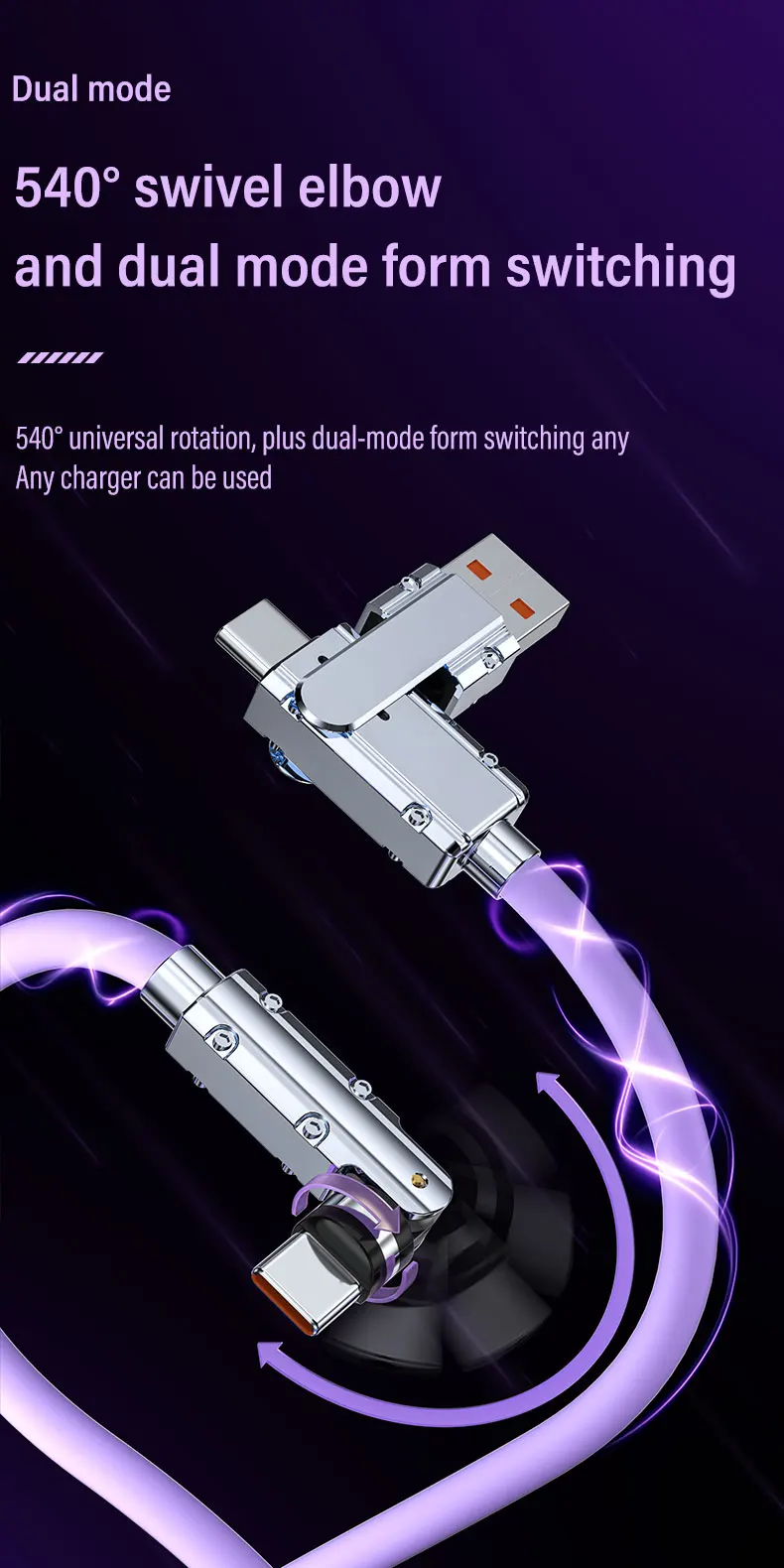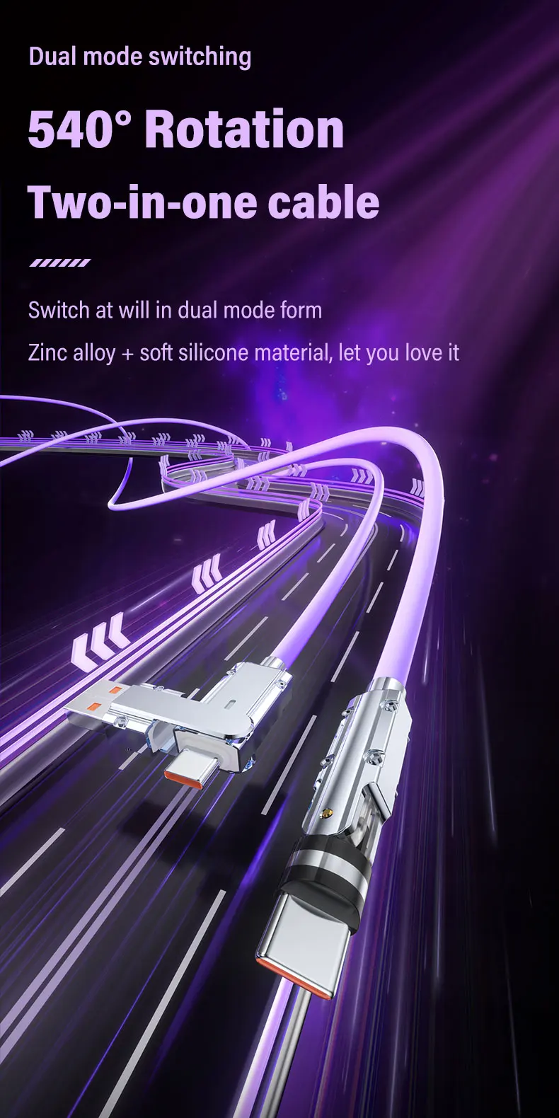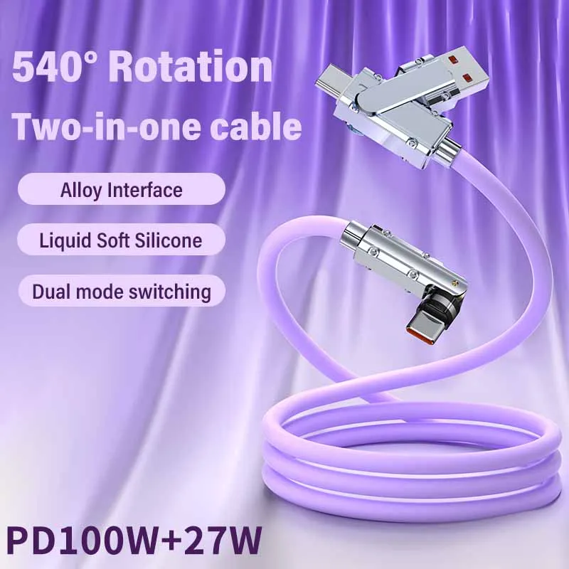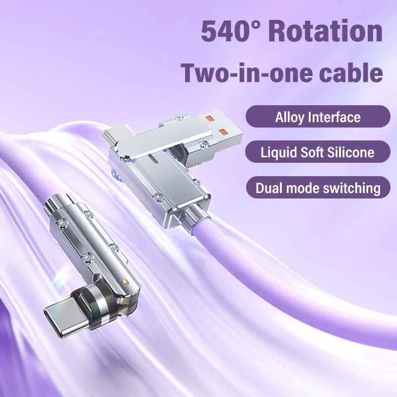 Comprar Cable de carga rápida 2 en 1 PD 100W, Cable de silicona de datos USB tipo C giratorio de 540 ° para iPhone 15 Pro, Xiaomi 14, Oneplus 12, POCO X6