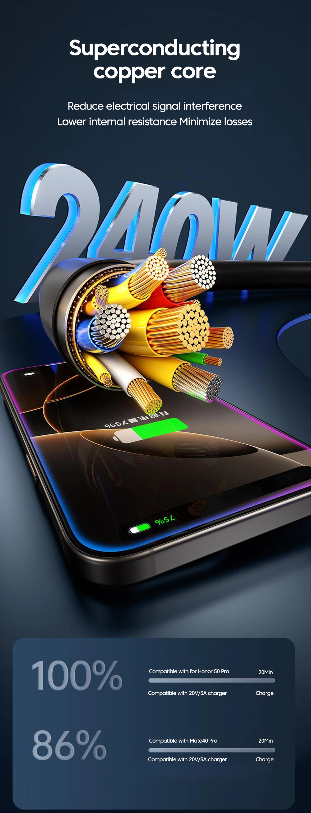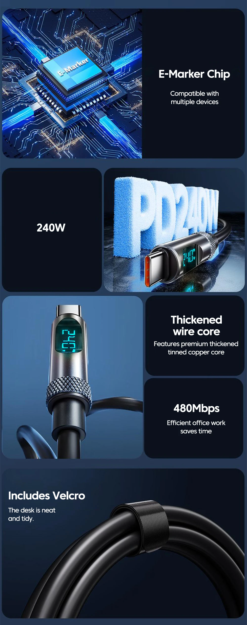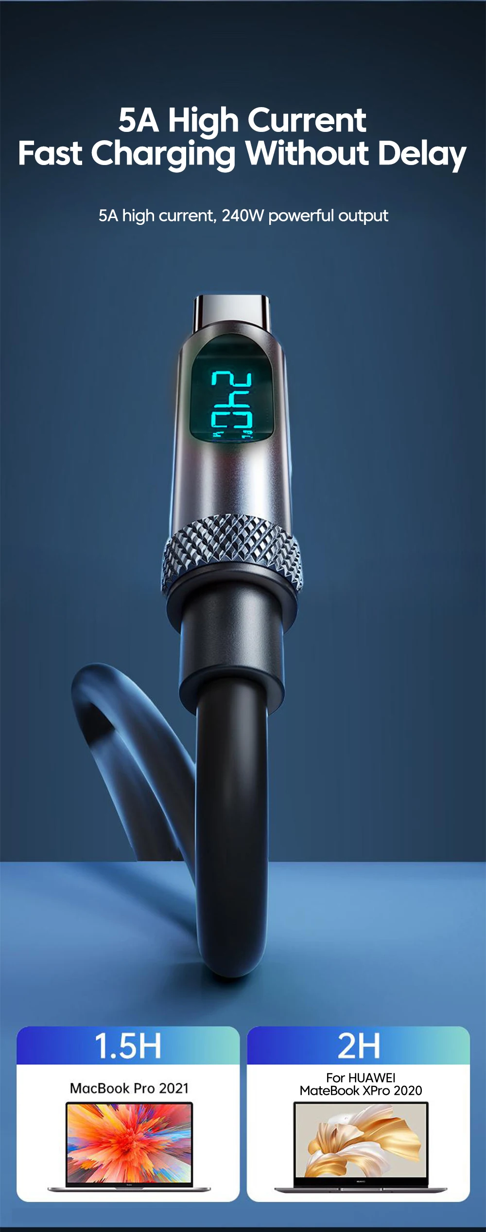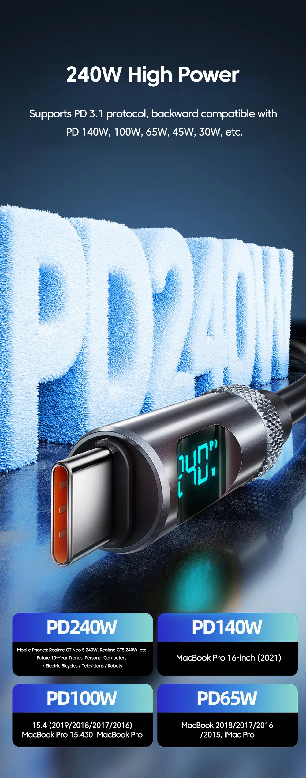 Comprar Cable de carga rápida de 240W tipo C a tipo C Cable de datos USB C para Iphone 15 16 17 Samsung Tablet Laptop Cable de pantalla Digital tipo C