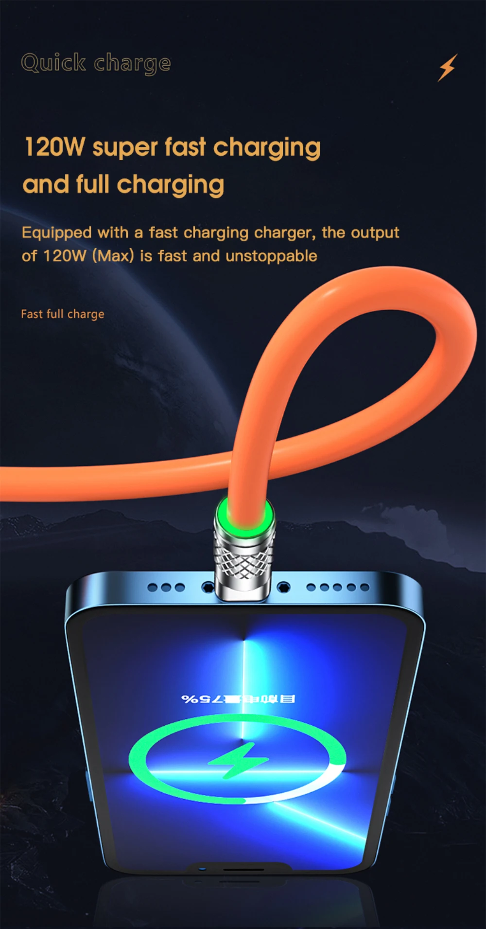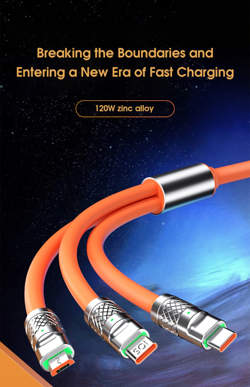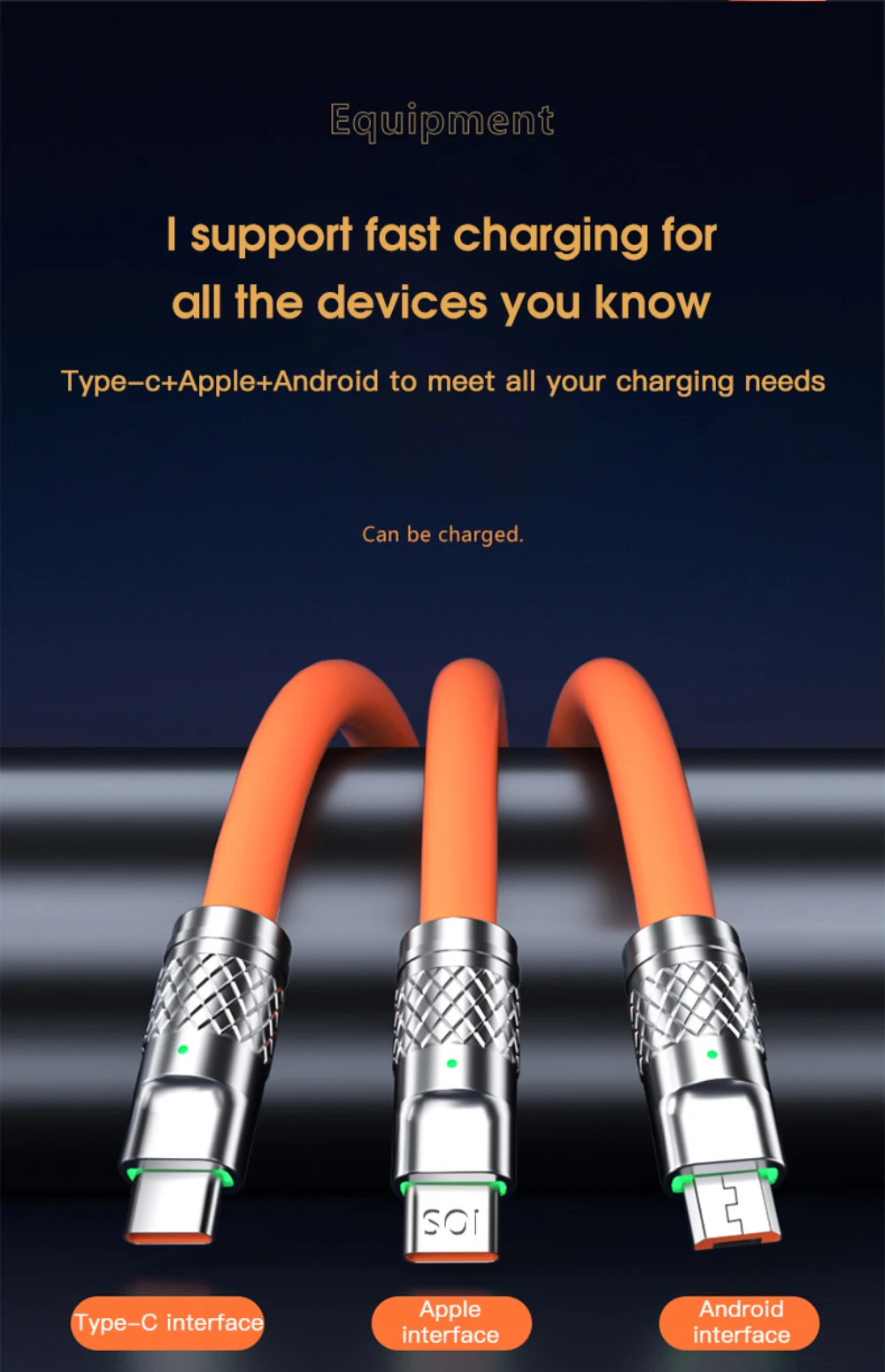Cable de carga rápida 120W 6A 3 en 1 para iPhone 7 8 14 Plus 11 12 13 Pro XS Max XR X Samsung Huawei Honor Xiaomi Redmi POCO OPPO Reno Realme VIVO iQOO Tipo-C Micro USB rápido cable cargador 1,2 m 2M