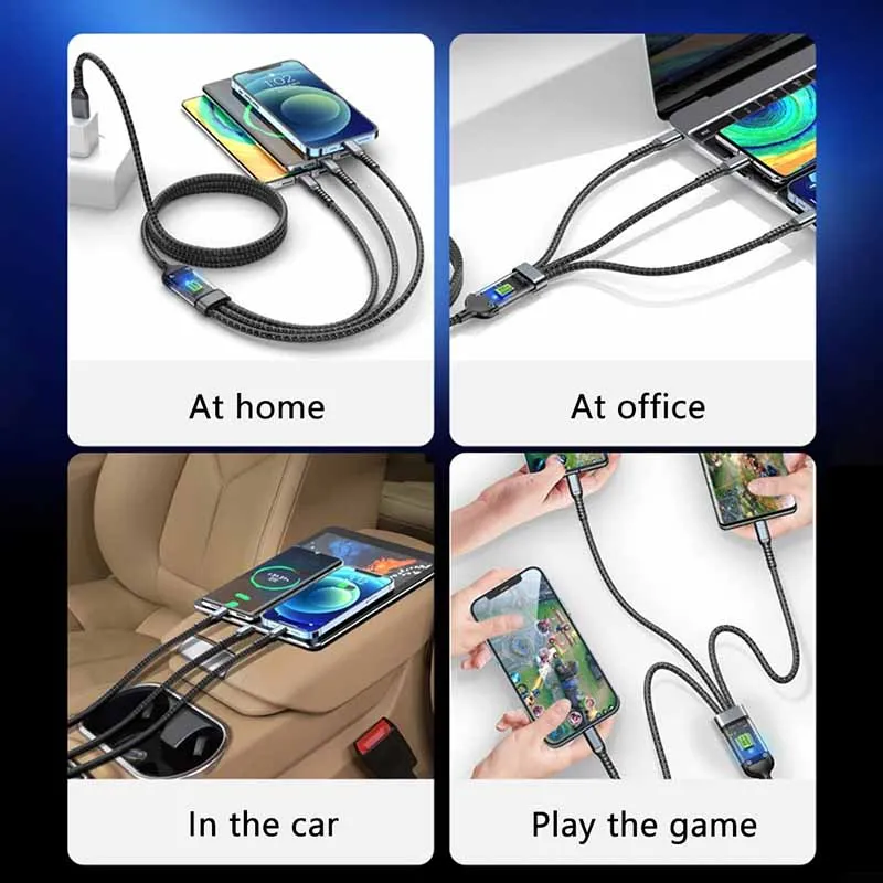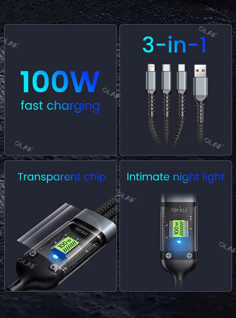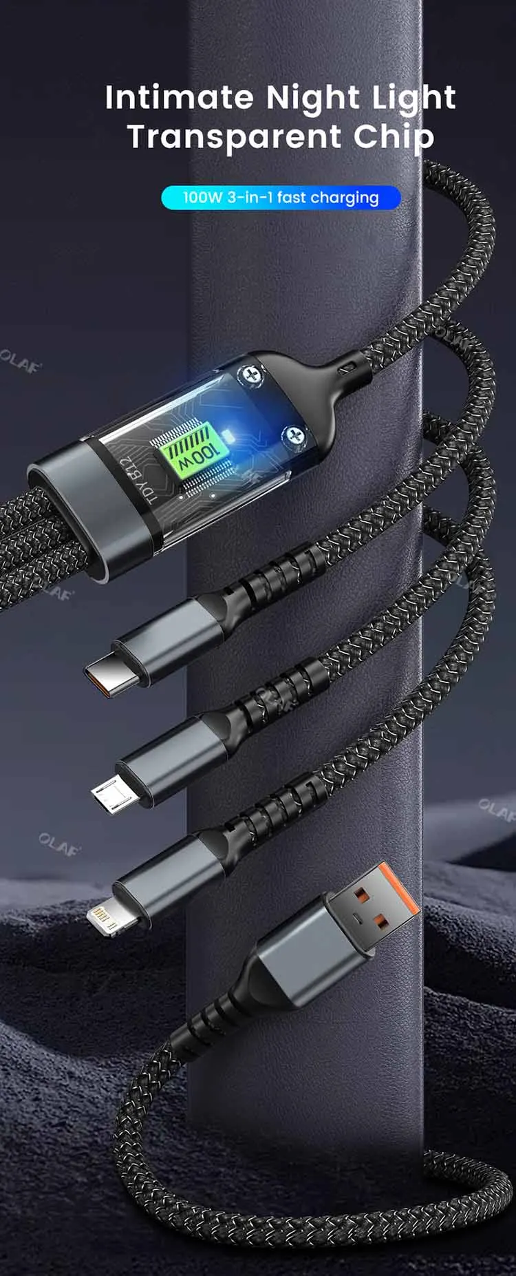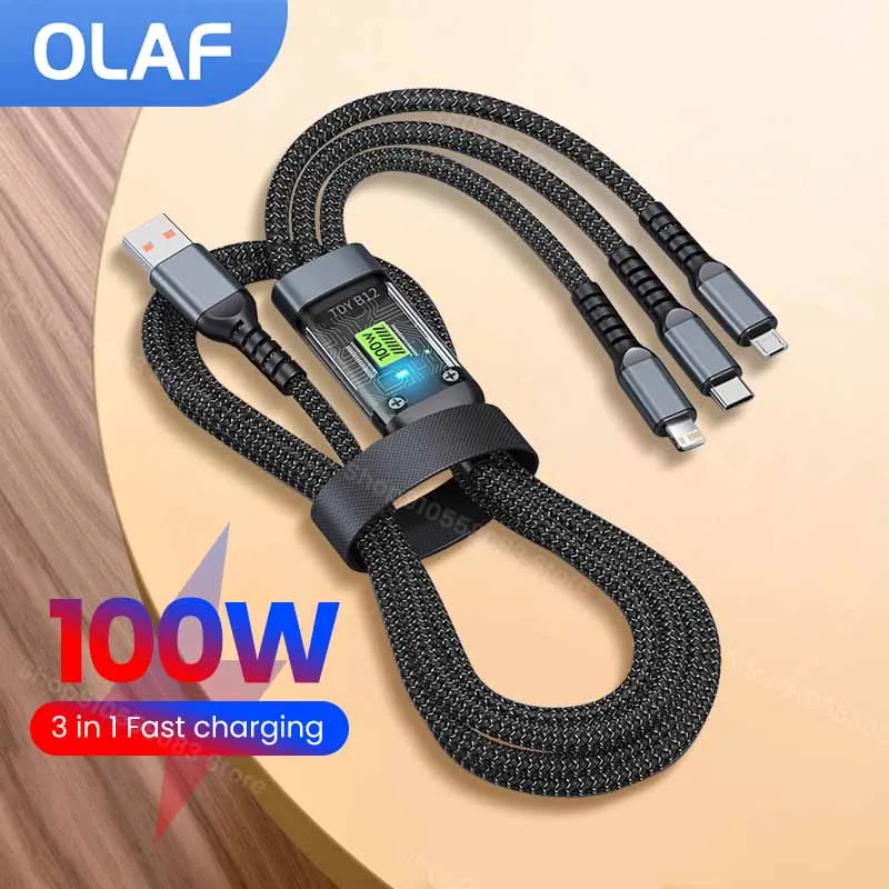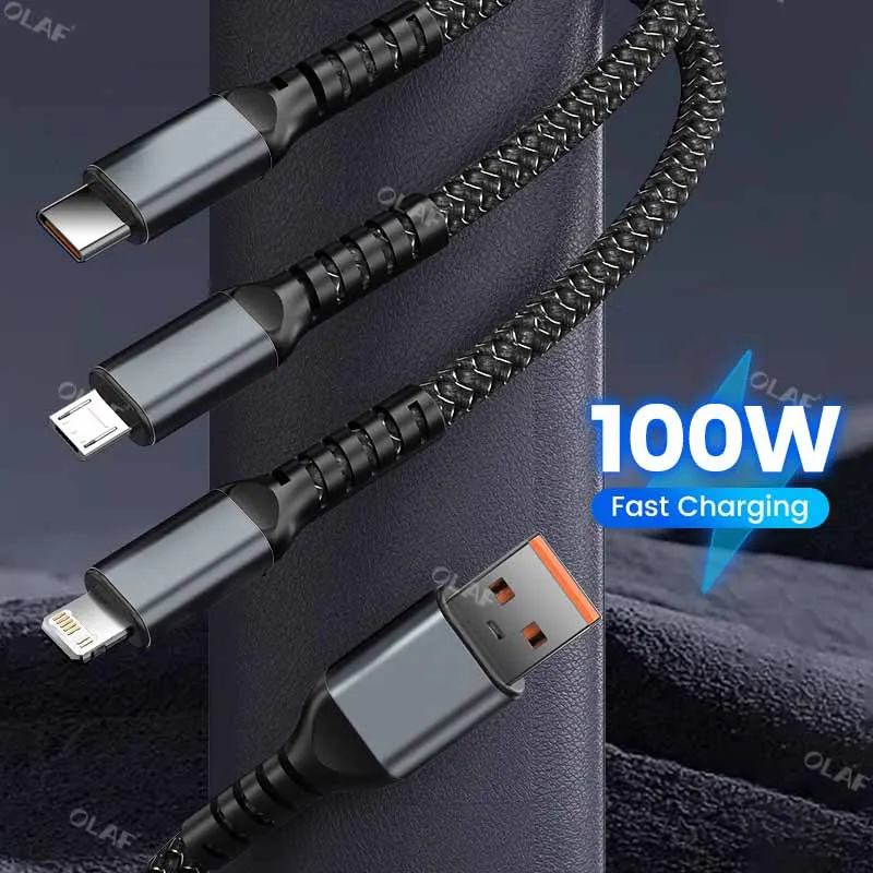 Comprar Cable de carga rápida 3 en 1, 100W, 6A, para iPhone 14, 13, 12, Xiaomi, Huawei, Cable USB tipo C para Samsung S20, S21, Cable de transferencia de datos