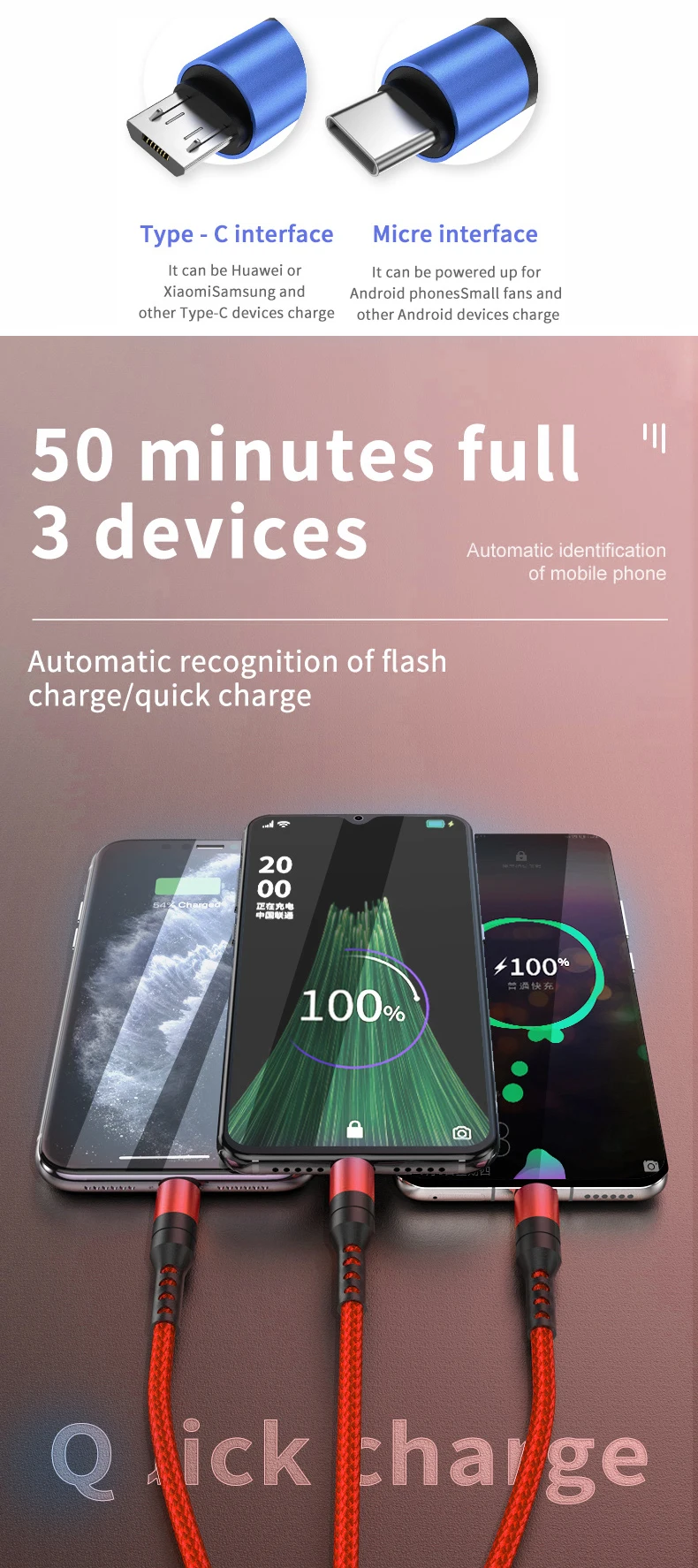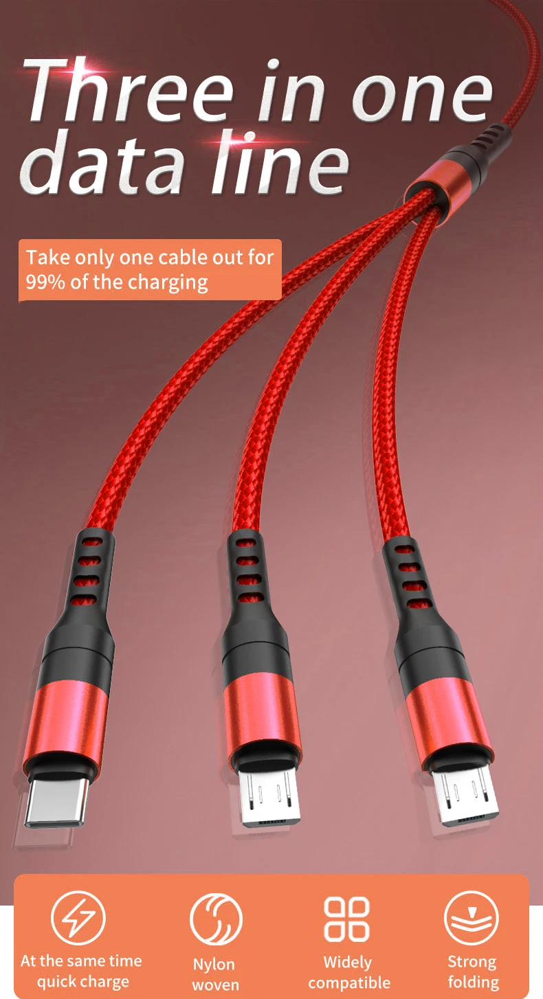 Comprar Cable de carga rápida 3 en 1 tipo C, Cable USB Micro para Samsung, Huawei, Xiaomi, POCO, accesorios de teléfono móvil, Cargador USB