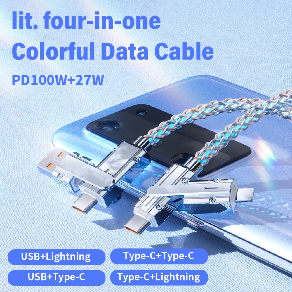 Cable USB C a USB C de 100W 4 en 1, cargador de teléfono de carga rápida, Cable de datos para iPhone, Samsung, Xiaomi, Huawei, tipo C, Cable de carga rápida