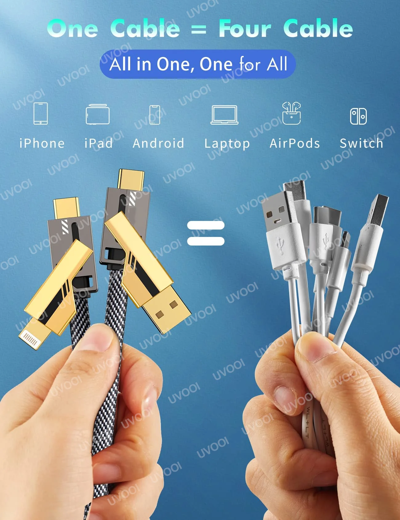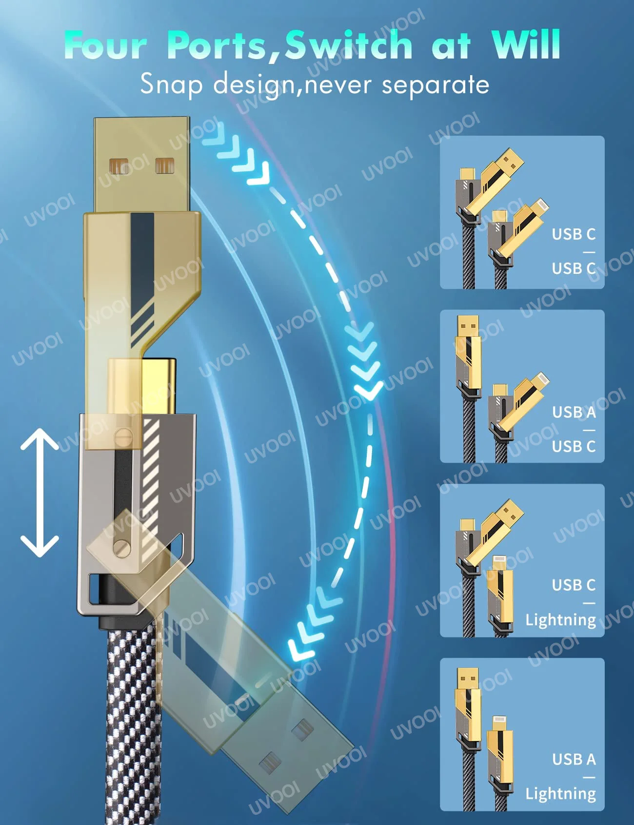��[4 en 1] El Cable siempre fue diseñado con la idea de simplificar su vida. Combina cuatro puertos: USB A C, USB A Lightning, USB C A Lightning y USB C A USB c-en un cable. No es necesario llevar varios cables para diferentes dispositivos.