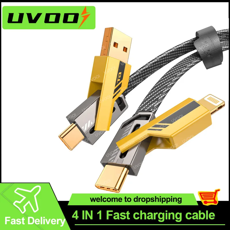 Comprar Cable de carga rápida 4 en 1, 60W, USB C, sincronización de datos, Lightning, Cable de carga múltiple para iPhone 11 Pro Max, Samsung S23, Xiaomi