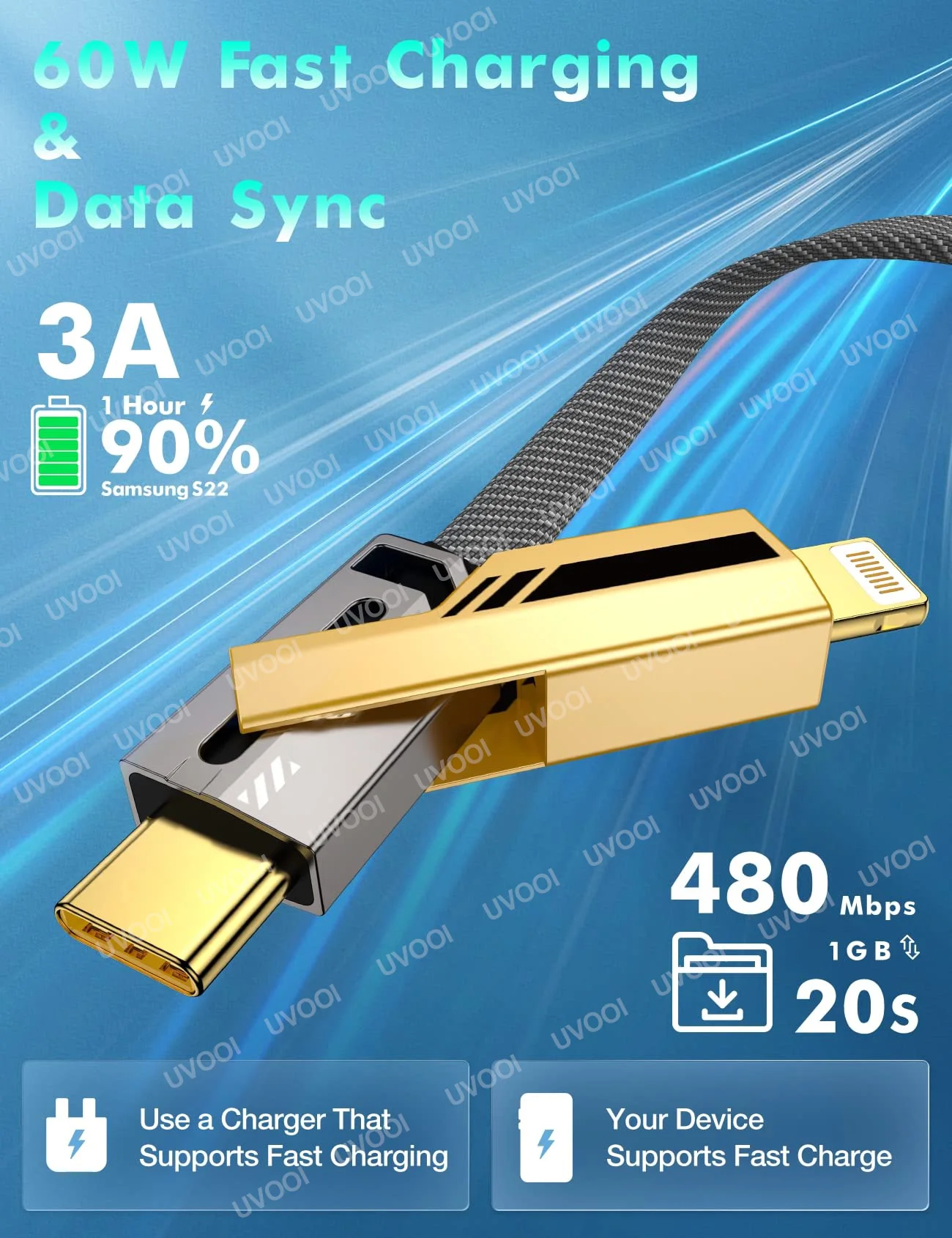 �� [Carga rápida de 60W y transferencia de datos] Este cable de cargador proporciona hasta 60W de salida. El teléfono se puede cargar hasta 60% en 30 minutos. Además, el cable de carga también admite transferencia de datos, la transferencia de archivos 1G tarda solo 20 segundos. Ahorra dos horas de tiempo de carga al día.