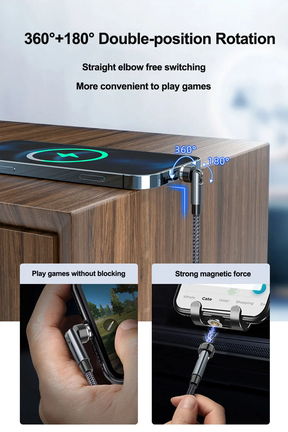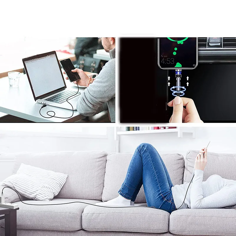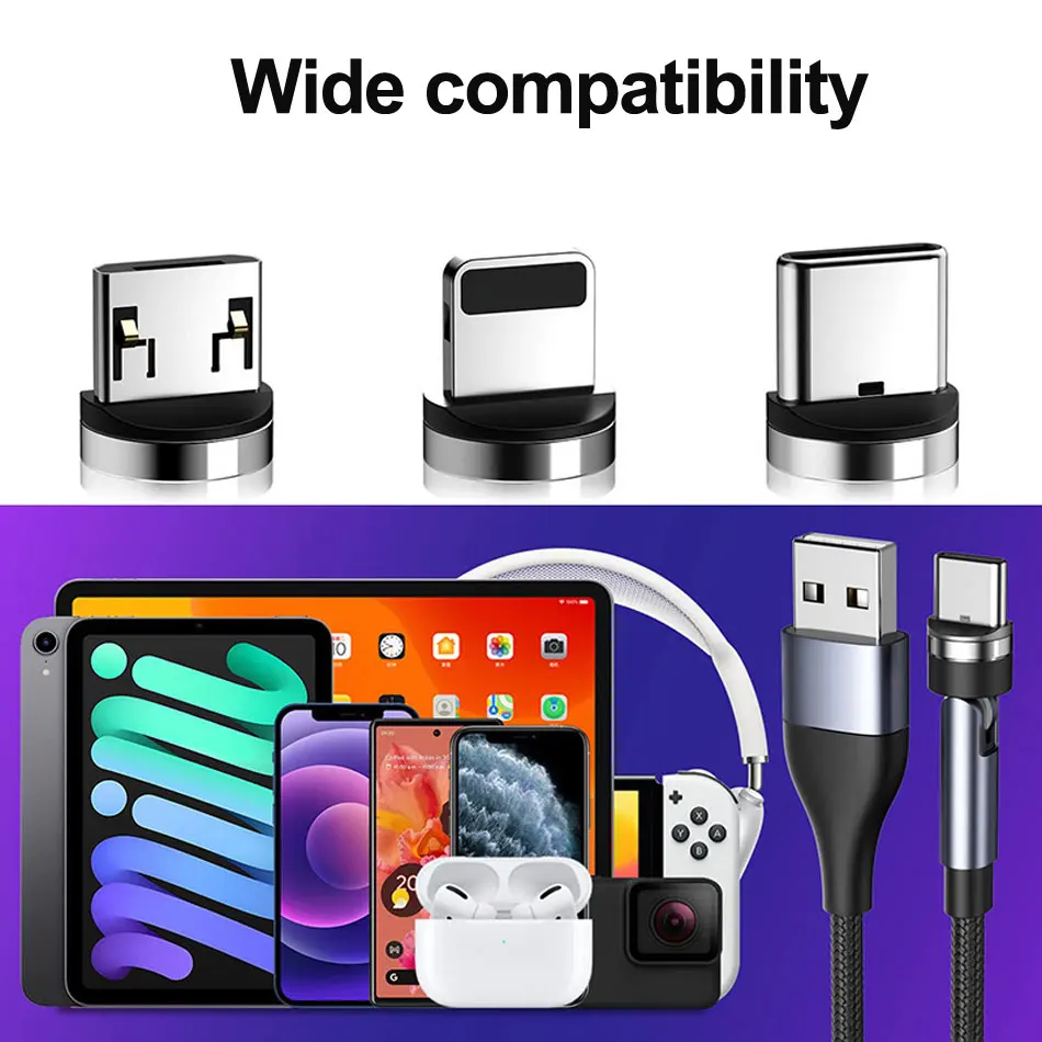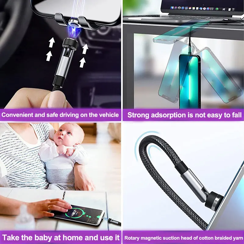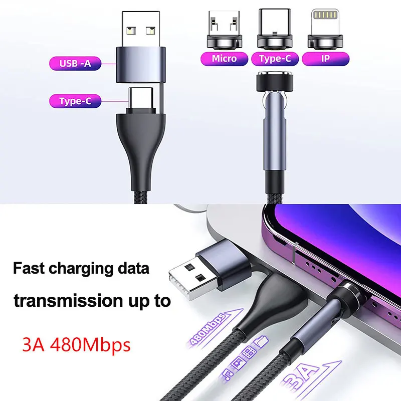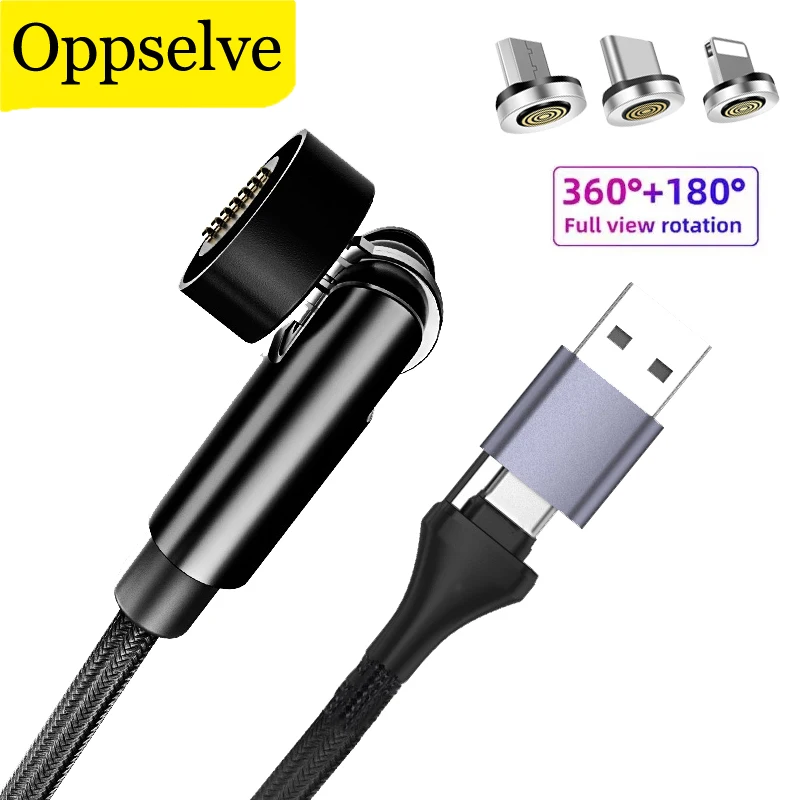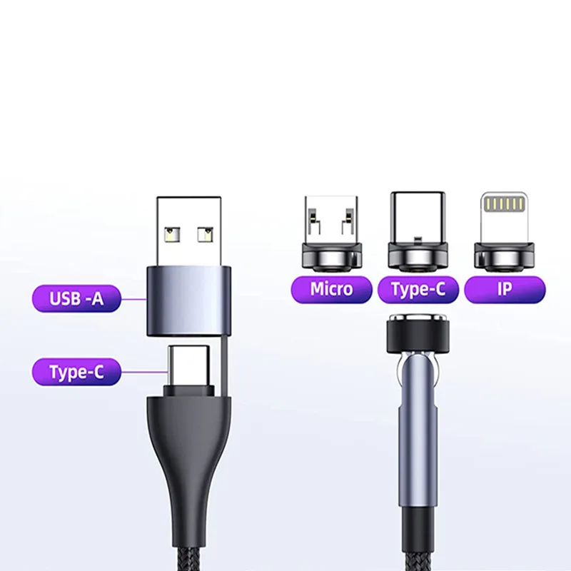 Comprar Cable de carga rápida 5 en 1 para teléfono móvil, dispositivo magnético giratorio de 540 grados, tipo C, para iPhone, POCO, OnePlus, Samsung