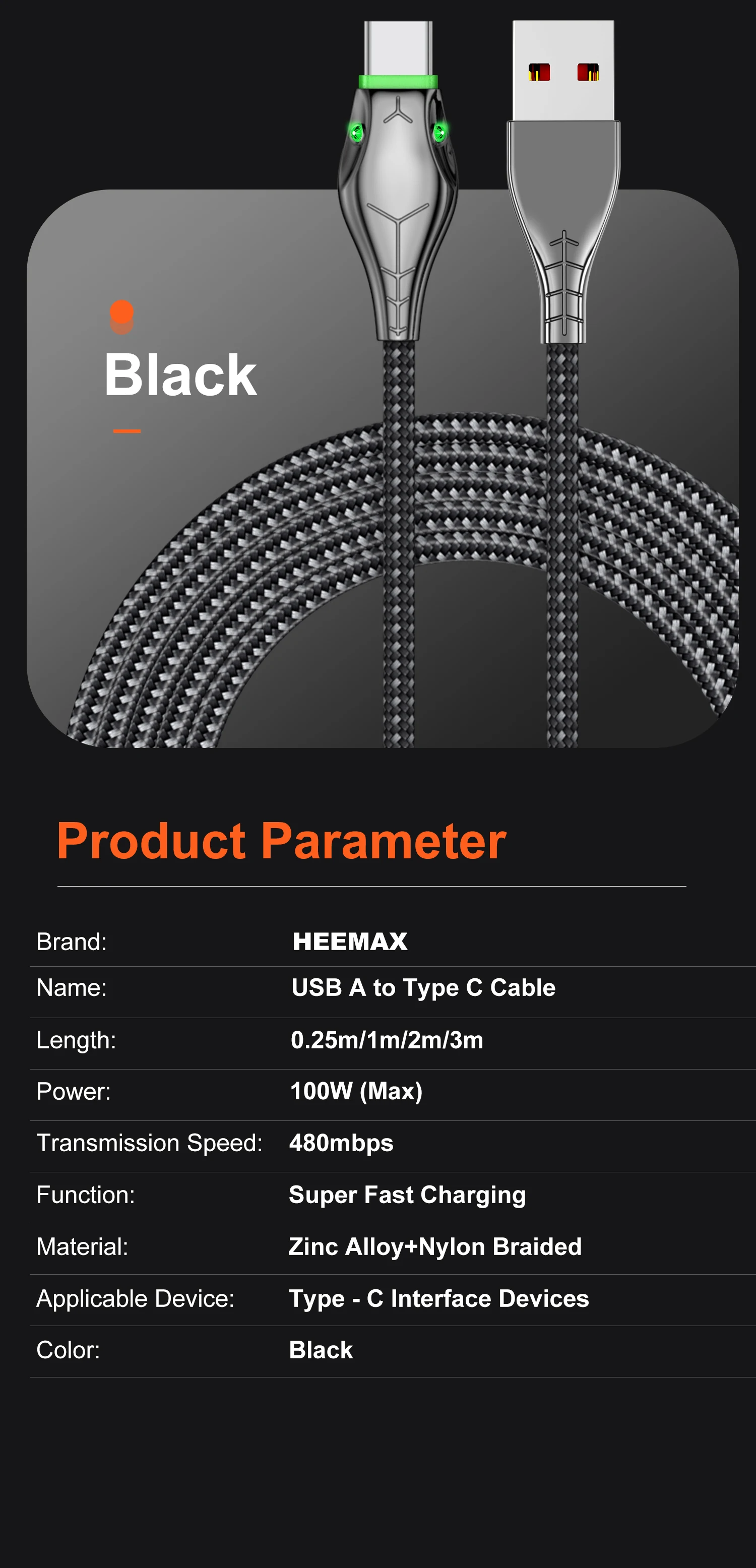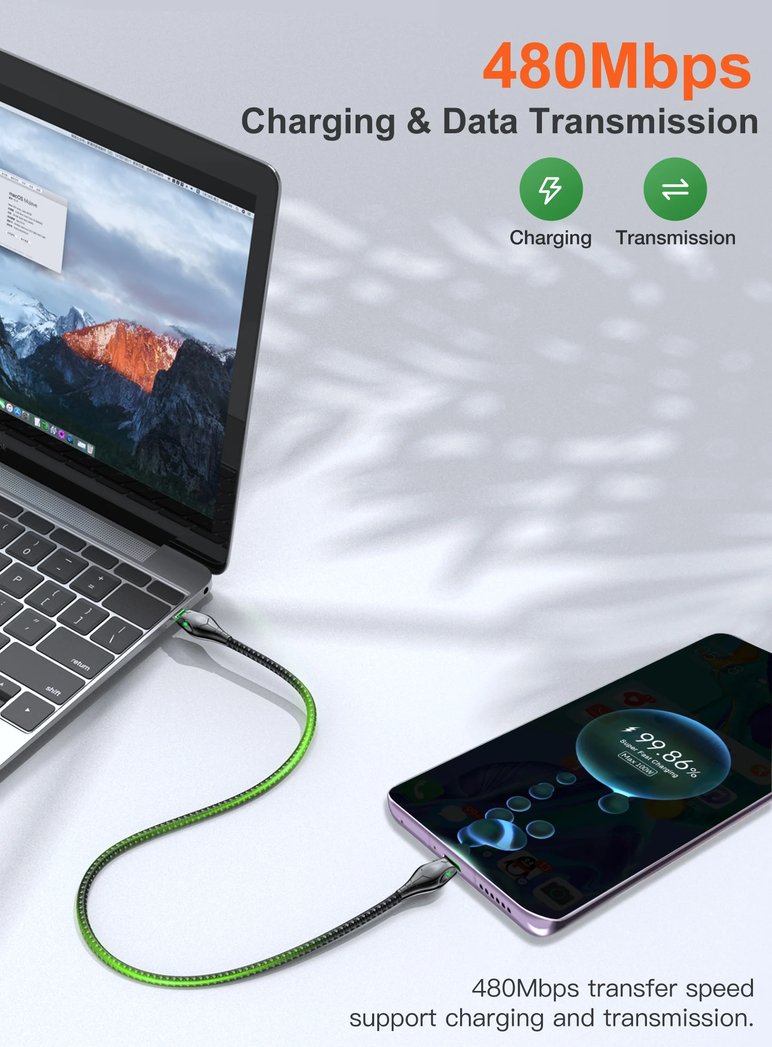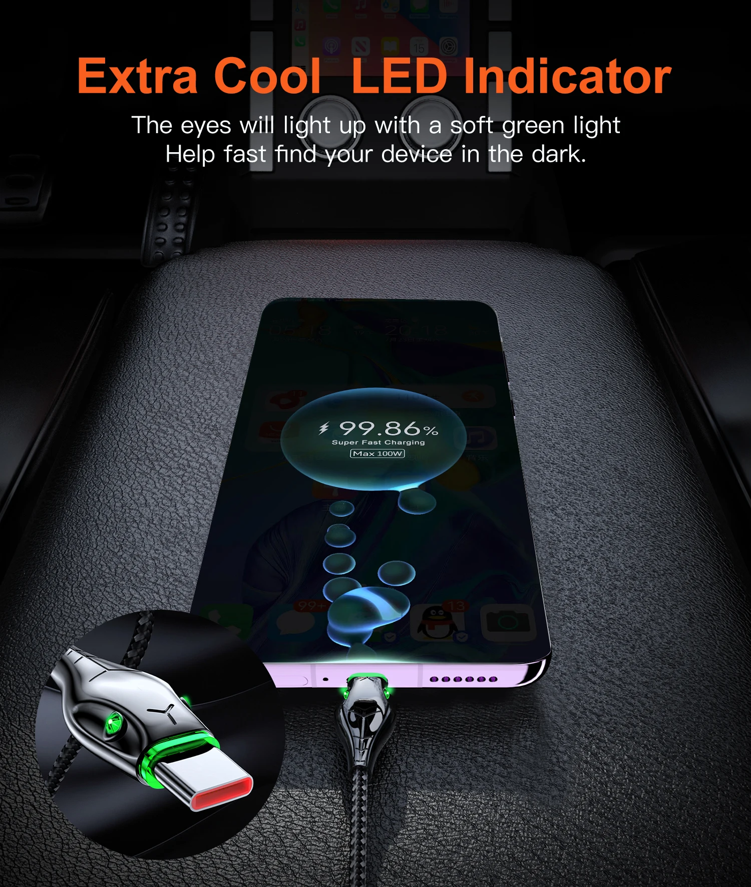 El indicador LED verde suave es conveniente para encontrar la línea de datos por la noche, y el estado de funcionamiento se puede identificar a través de la luz indicadora.