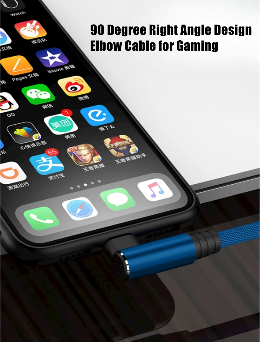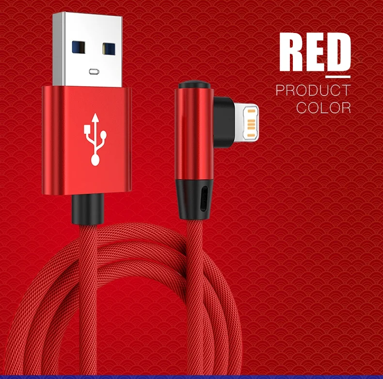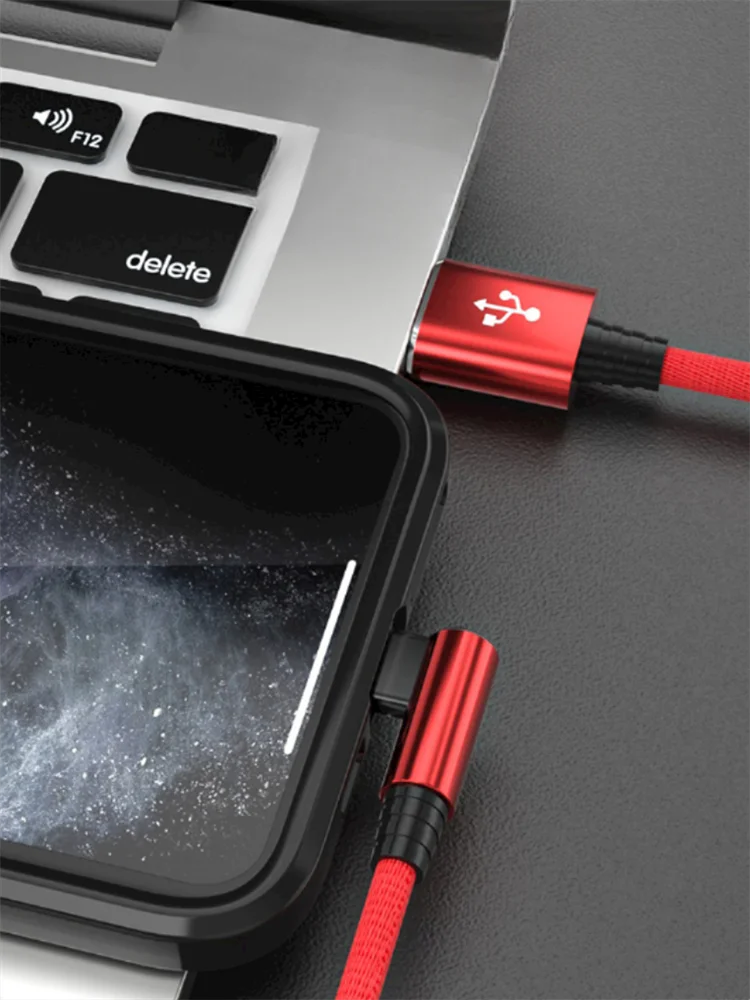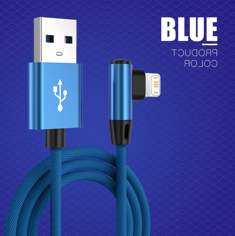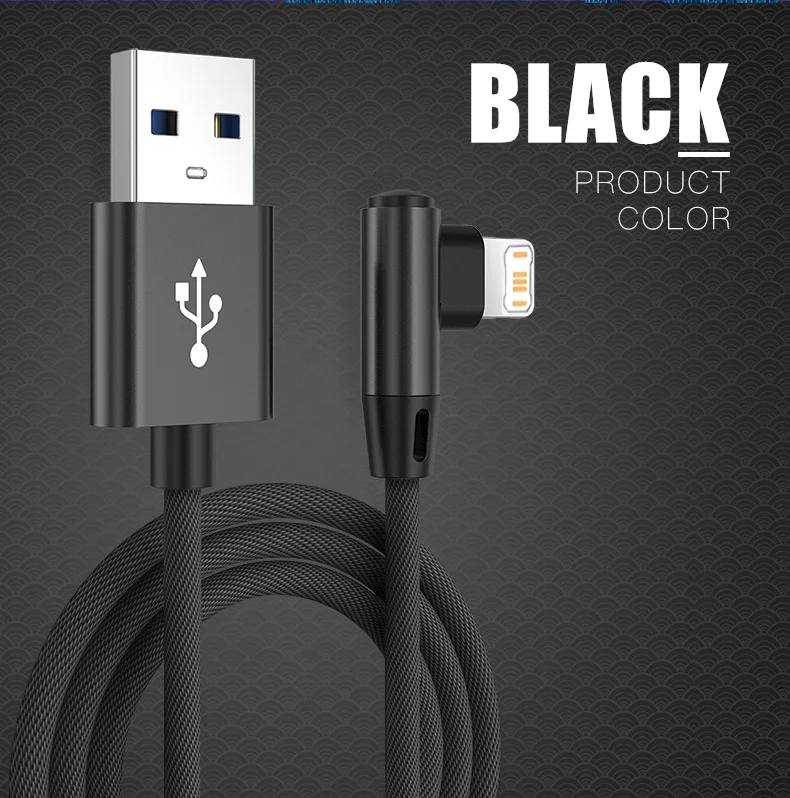Cable de carga rápida con diseño de codo de 90 grados para iPhone 11 12 mini 13 Pro 14 Plus XS Max X XR 6S 7 8 Plus SE 2020 Cables de carga USB para juegos 0,25 m 1 m 1,5 m 3 m Cable trenzado