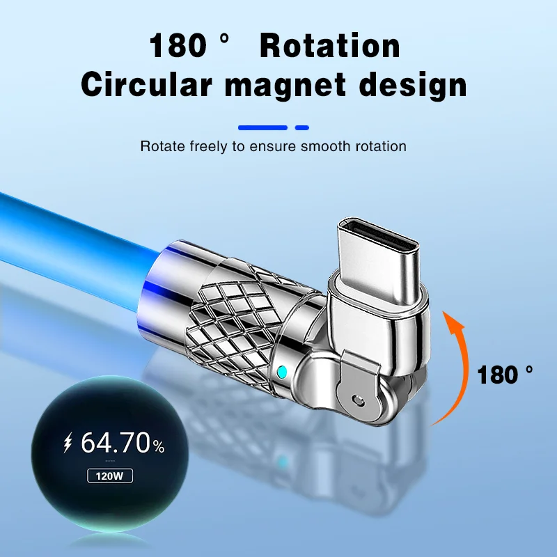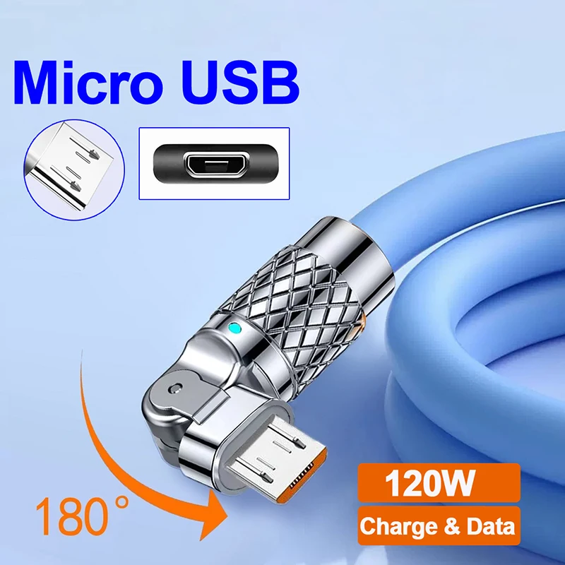 Cable de carga rápida con codo de rotación de 180 grados, Micro Cable de carga para juego, 120W, 7A, USB tipo C, para iPhone, Xiaomi, Samsung, OPPO VIVO