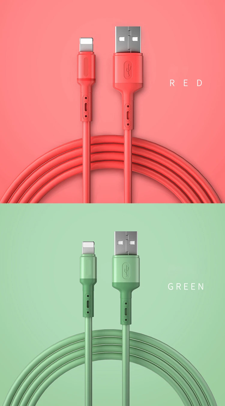Comprar Cable de carga rápida de datos de silicona líquida con núcleo USB, adecuado para iPhone 11 Pro Max, X, XR, XS, 8, 7, 6, 6s, 5, 5s, 1/1, 5/2M