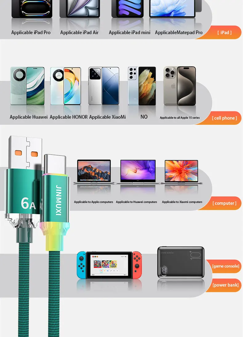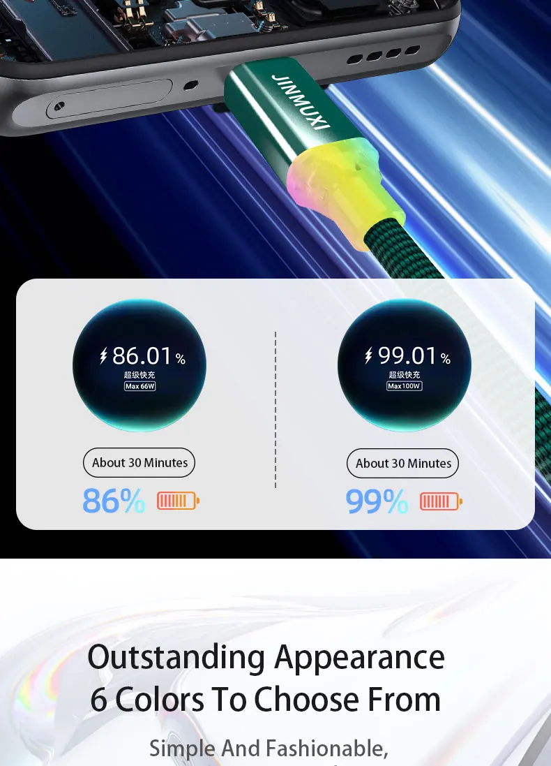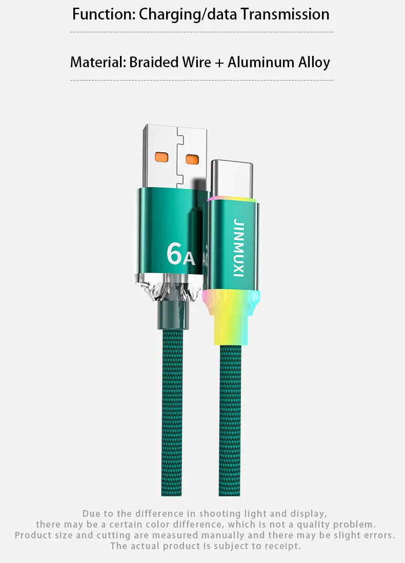 Comprar Cable de carga rápida JINMUXI USB tipo C 20w-120w 1.5A-6A para Xiaomi Redmi Huawei Oppo Oneplus IPhone1516 Cable de datos de carga rápida