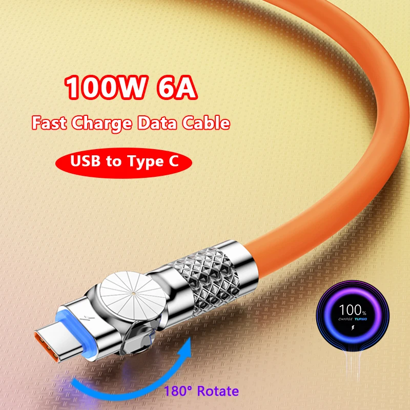 Comprar Cable de carga rápida para juegos, conector USB tipo C, 100W, 6A, codo giratorio de 180 °, cargador para Samsung S23, Xiaomi y Huawei