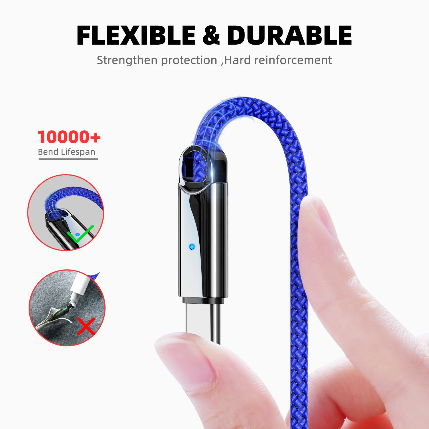 Cable USB tipo C 5A, Cable de carga rápida de nailon para Samsung 22 21 20 10 Note 10, Cable cargador USB para Xiaomi OPPO Huawei Oneplus