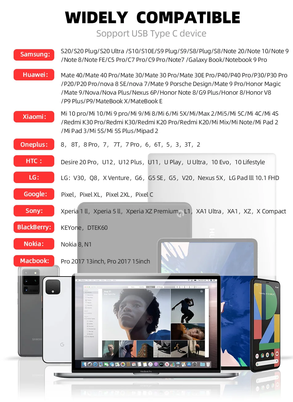 Admite transferencia de datos y carga súper rápida 5A. Soporte QC 3,0, salida 5A (máx.),5A para tipo C