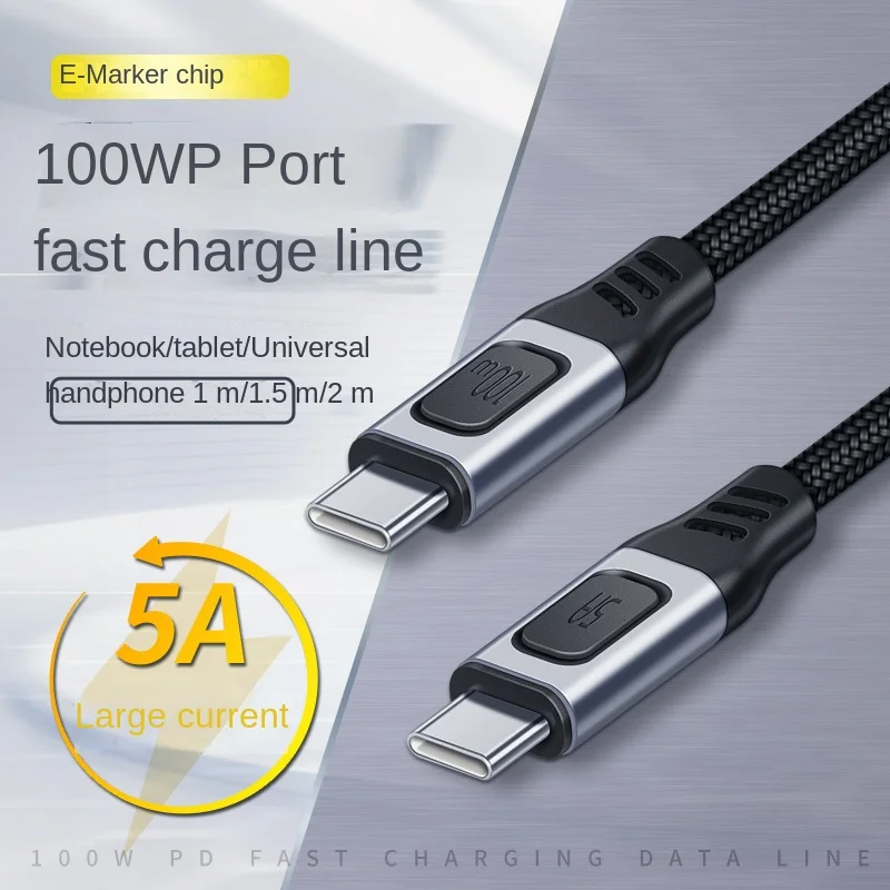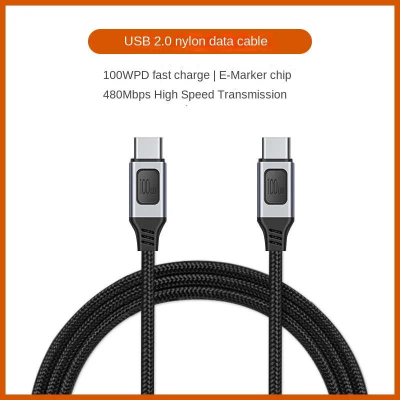 Cable de carga rápida PD de 100w, Cable de datos tipo C trenzado de nailon de doble cabeza de 20V/5A con Chip Emarker para la mayoría de dispositivos de USB-C